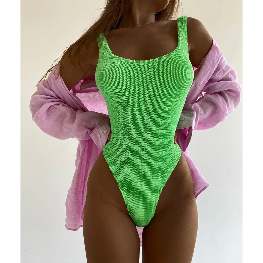 Женский сексуальный цельный купальник бандо 2021, однотонный купальник, женские стринги, бразильский Монокини, купальный костюм, пляжная одежда