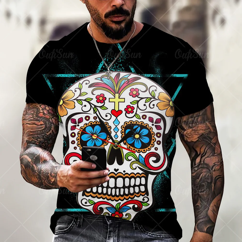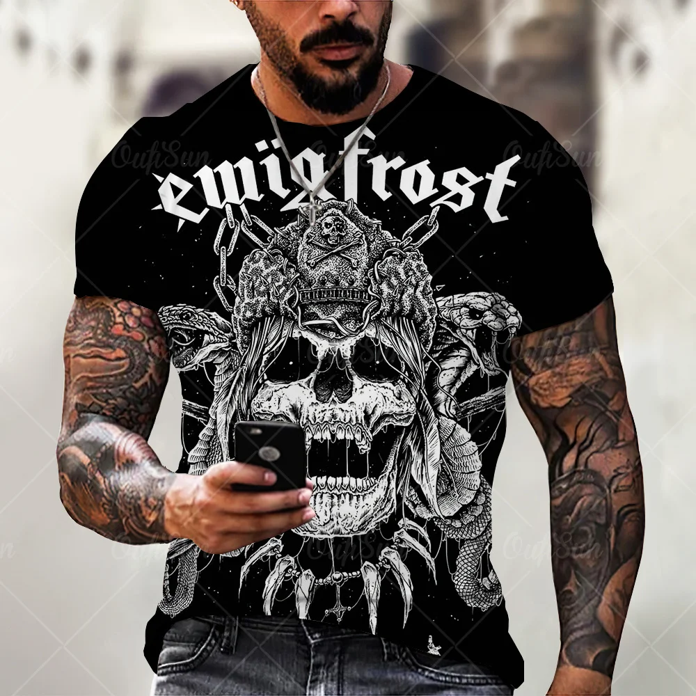 Мужские футболки с 3D-принтом черепа, повседневная спортивная одежд...