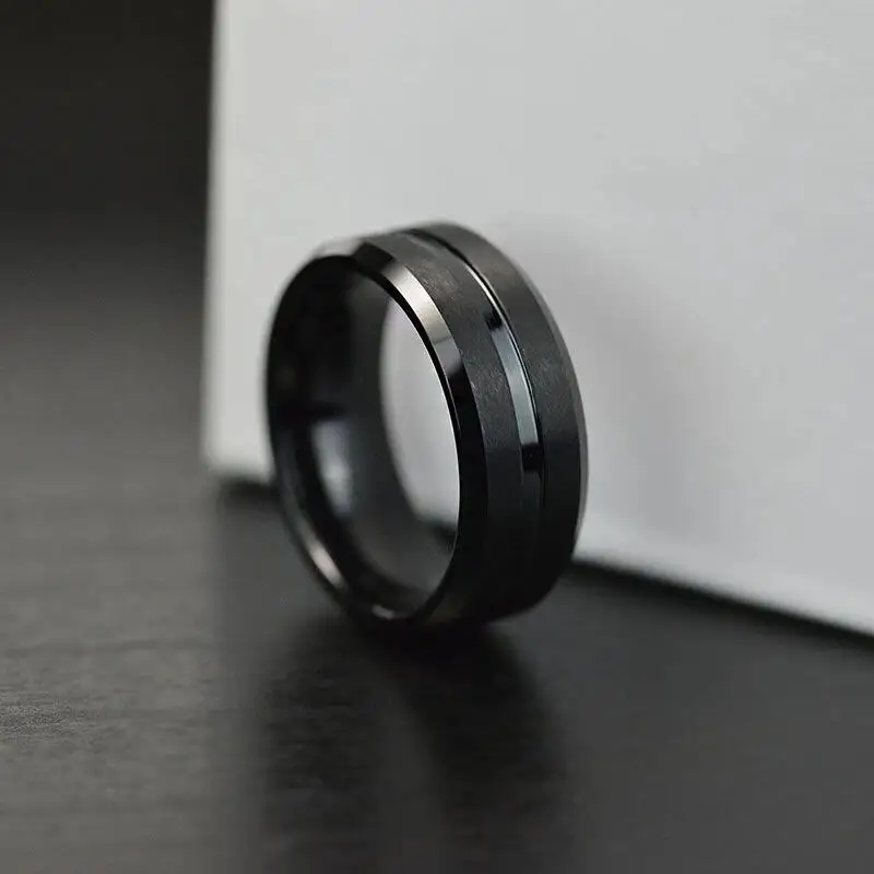 Модные черные вольфрамовые обручальные кольца 8 мм для мужчин, обручальное кольцо с черным углублением и скошенным краем, мужской подарок на день Святого Валентина, бесплатная доставка