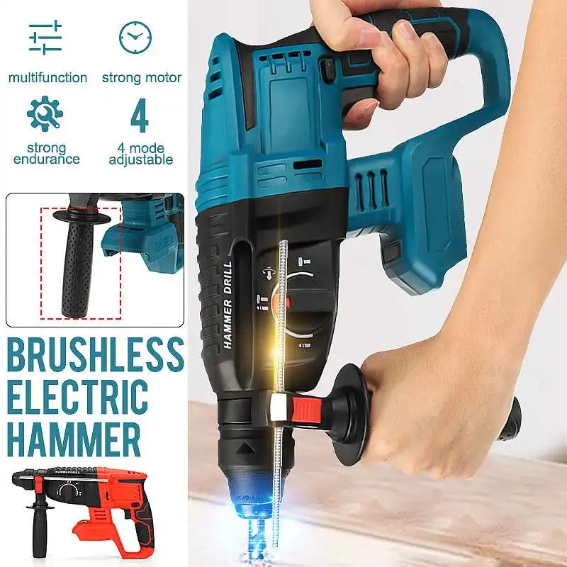 -Машина в сочетании с функциями электрического молотка и электрической дрели. Поверните переключатель для преобразования функций.