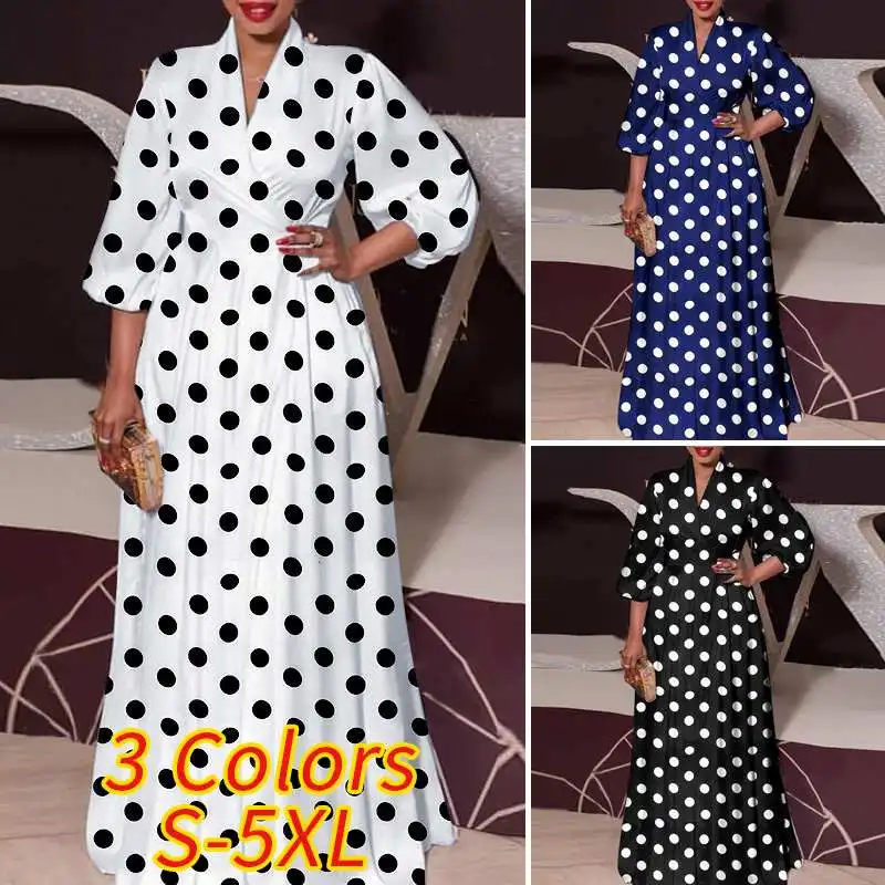 Номер моделиAutumn Spring Dot Printed 3/4 Sleeve Maxi Dress
