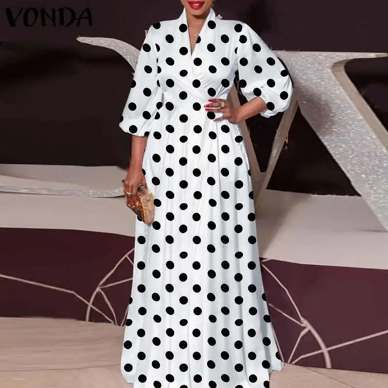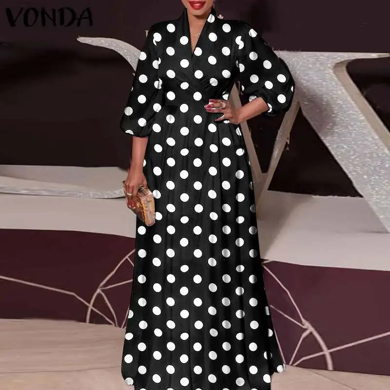 Элегантное праздничное длинное платье-макси 2022 VONDA, женское винтажное длинное платье-макси в горошек с V-образным вырезом, повседневное женское платье с пышными рукавами