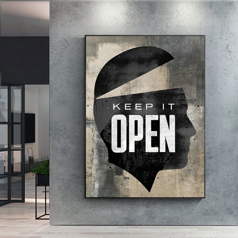 Современная Картина на холсте с мотивирующей цитатой Keep It Open, плакаты и принты на стену, картина для декора гостиной