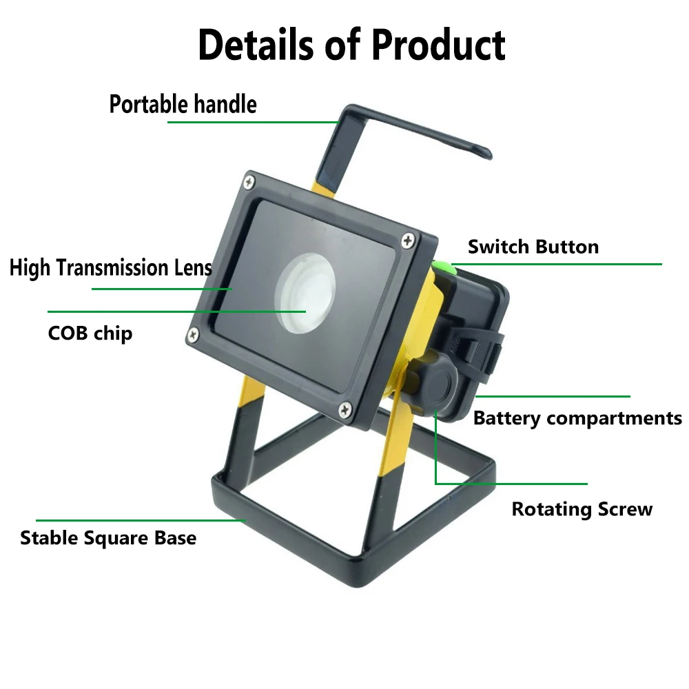 Перезаряжаемый портативный прожектор идеально подходит для активного отдыха и чрезвычайных ситуаций из-за отсутствия освещения.