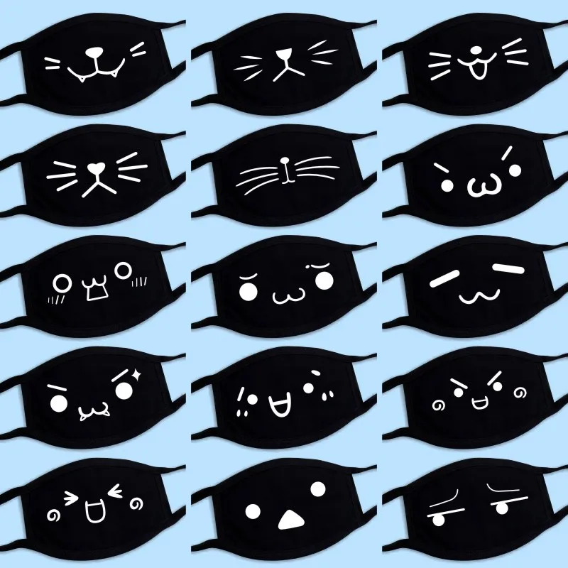 Симпатичная Черная Пылезащитная маска для мужчин и женщин, хлопковая модная многоразовая маска с мультяшным рисунком