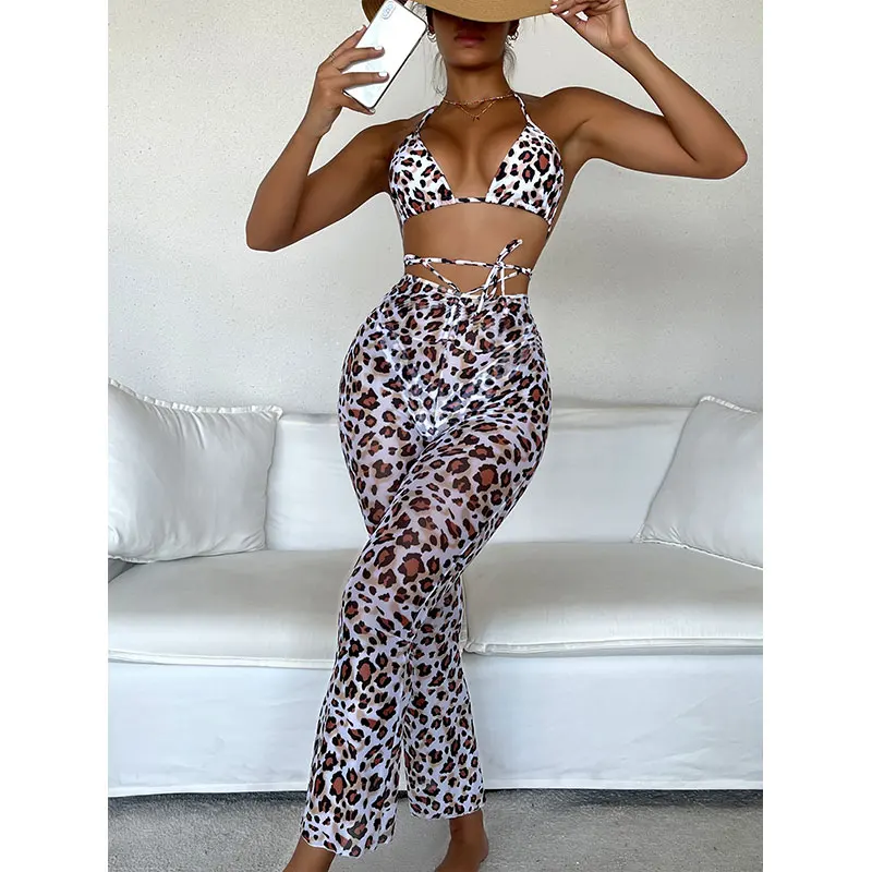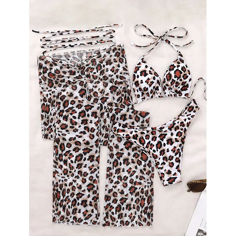Треугольный бикини с лямкой на шее, купальник с леопардовым принтом...