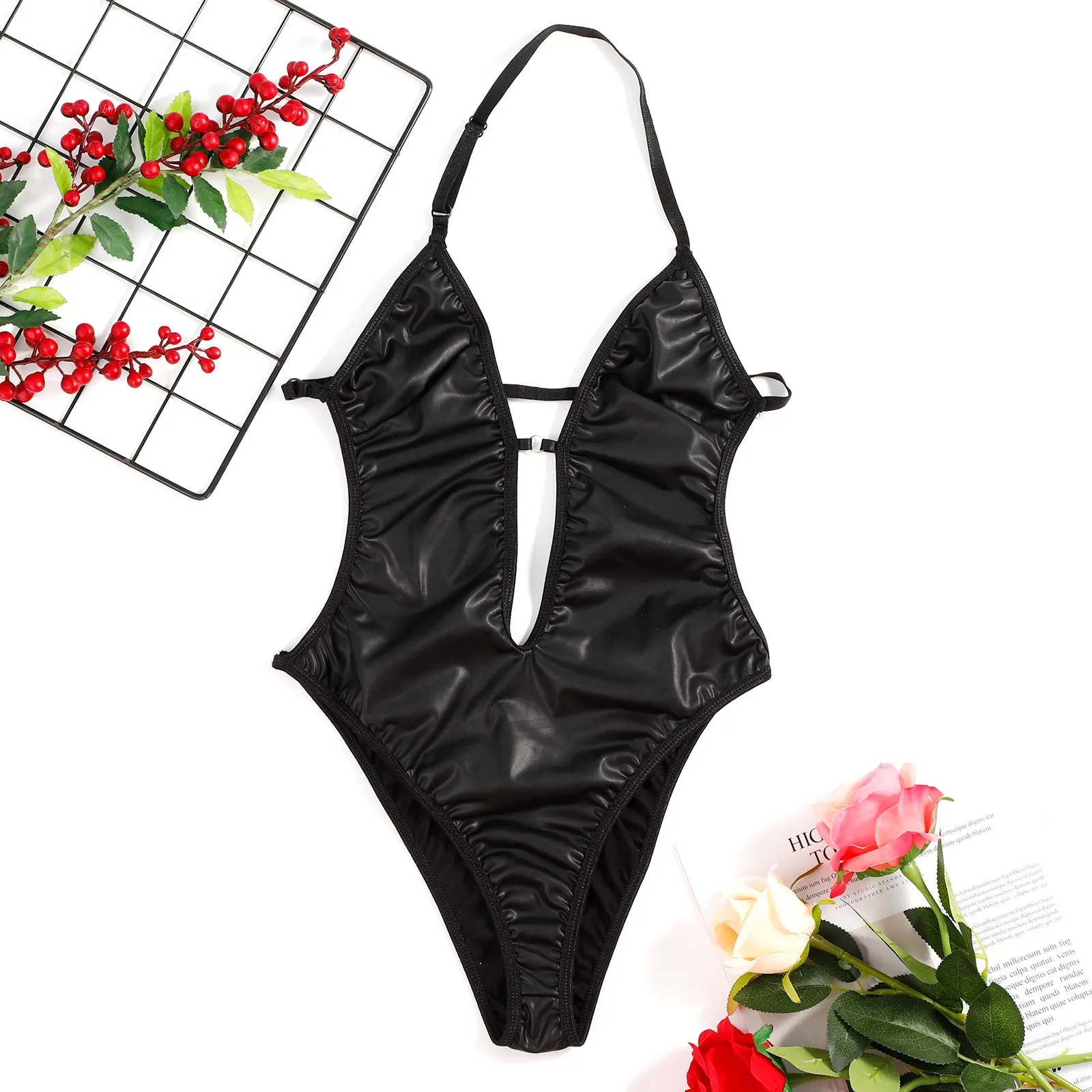 Кожаный Комбинезон Тедди без стального кольца нижнее белье Открытое сексуальное нижнее белье клубный комбинезон