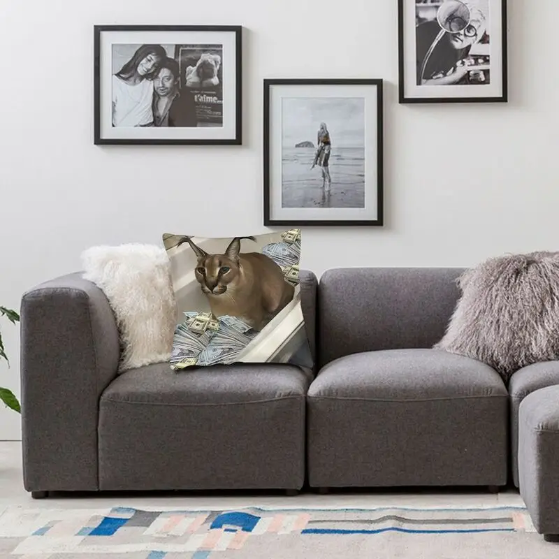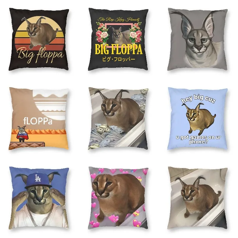 Крутой квадратный Чехол-Подушка с котом Floppa, домашний декор, 3D двухсторонний принт, большая Наличная Подушка Floppa, чехол для дивана