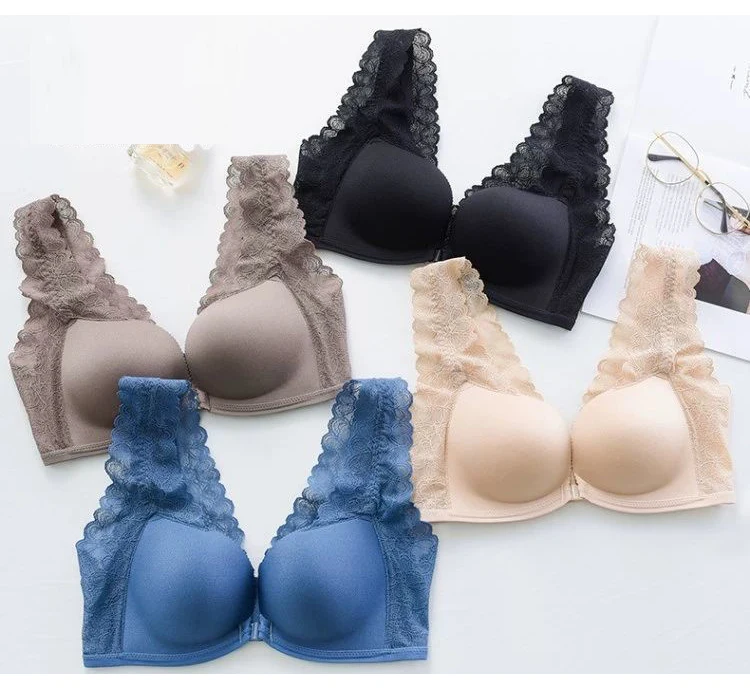Женский сексуальный бюстгальтер с застежкой спереди, Кружевные бретельки, нижнее белье, бюстгальтер пуш-ап, удобное нижнее белье, дышащий бюстгальтер без стальных колец
