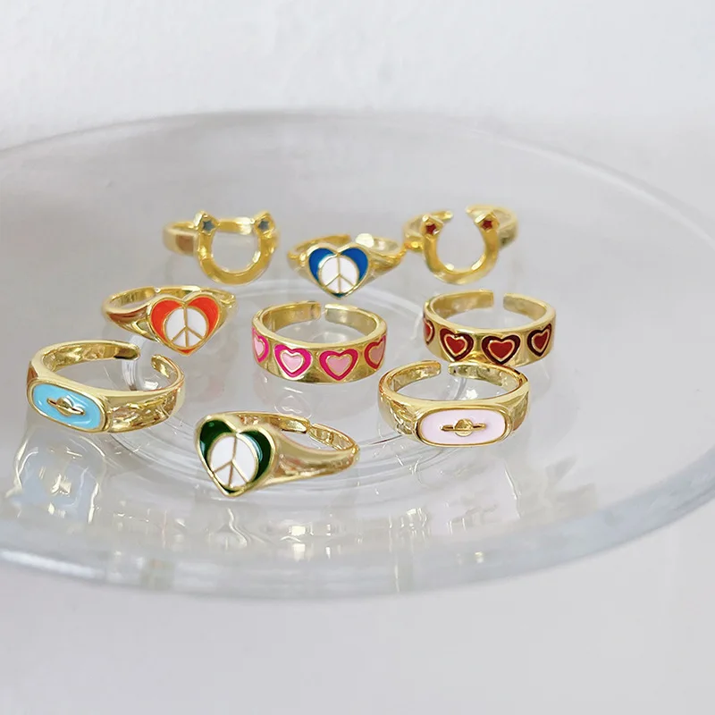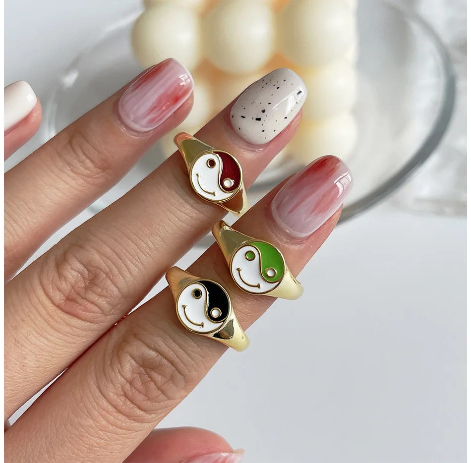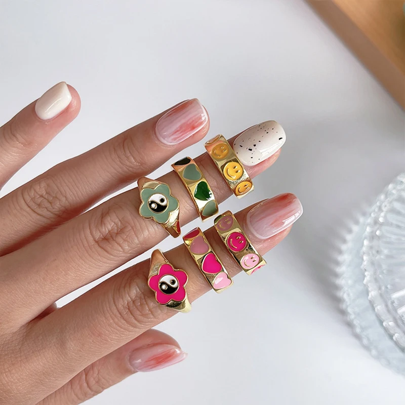Новинка, Винтажное кольцо с улыбающимся сердцем в стиле Instagram, красочные кольца в форме капли с цветком Инь-Янь для женщин и девушек, модное эстетическое ювелирное изделие, подарок