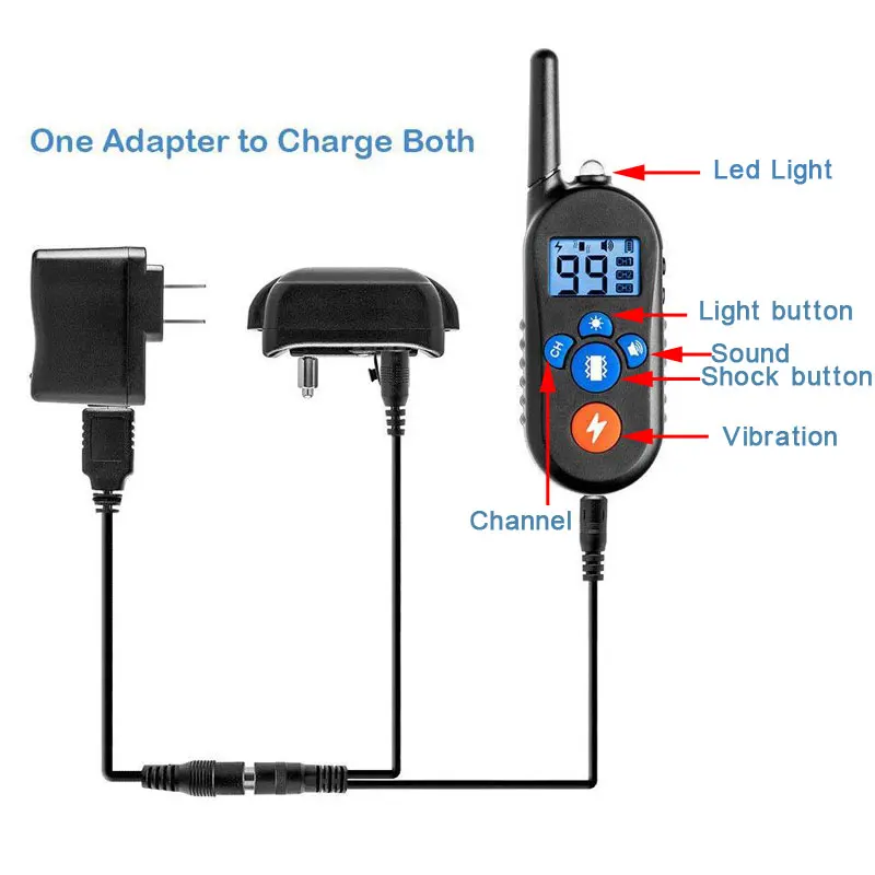 1. Новейший технологический продукт позволит вашей собаке плавать с приемником и даже нырять вместе. Максимальная глубина погружения приемника составляет 30 метров и глубина 1 метра воды, она может замачиваться в течение 24 часов.2. Самый популярный и гуманный тренажер для собак доступен на данный момент. Он может быть использован, чтобы помочь собакам правильно лаять, ходить, тренироваться, сидеть, вторгаться и подчиняться другим актам.3. 0-99 Регулируемая статическая стимуляция с вибрационным ударом и стандартным звуковым режимом. Три типа раздражения гарантируют, что вы найдете тренировочный рисунок, подходящий для вашей собаки.4. Конструкция технологии дистанционного управления заключается в том, чтобы обеспечить дальность дистанционного управления до 800 метров и дать Вам тренировать свою собаку в парке или на заднем дворе. Водонепроницаемый и Перезаряжаемый приемник и передатчик, так что вы можете приручить свою собаку в дождливые дни; 14-24 "Регулируемый размер воротника для шеи.