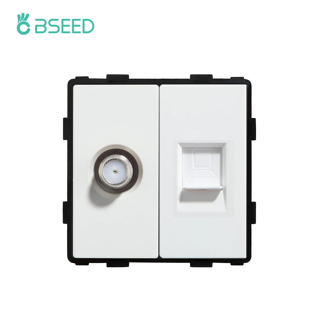 Белая розетка переключателя BSEED, детали для модуля сделай сам, стеклянная рама, функциональный ключ для ТВ, TEL, USB, ST, HD, разъем питания, бесплатные сборные модули