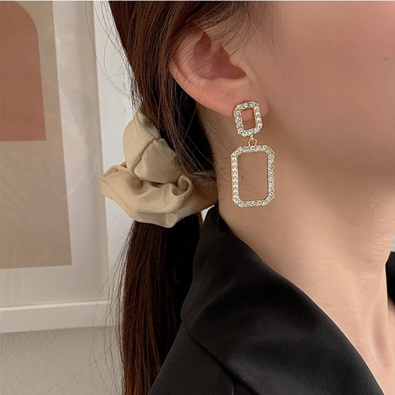 серьги 2021 тренд бижутерия для женщин Серьги-подвески xiyaniстразы 2021, трендовые серьги из акрилового сплава с геометрическим сердцем и жемчугом для женщин, подарок на вечеринку, модные украшения