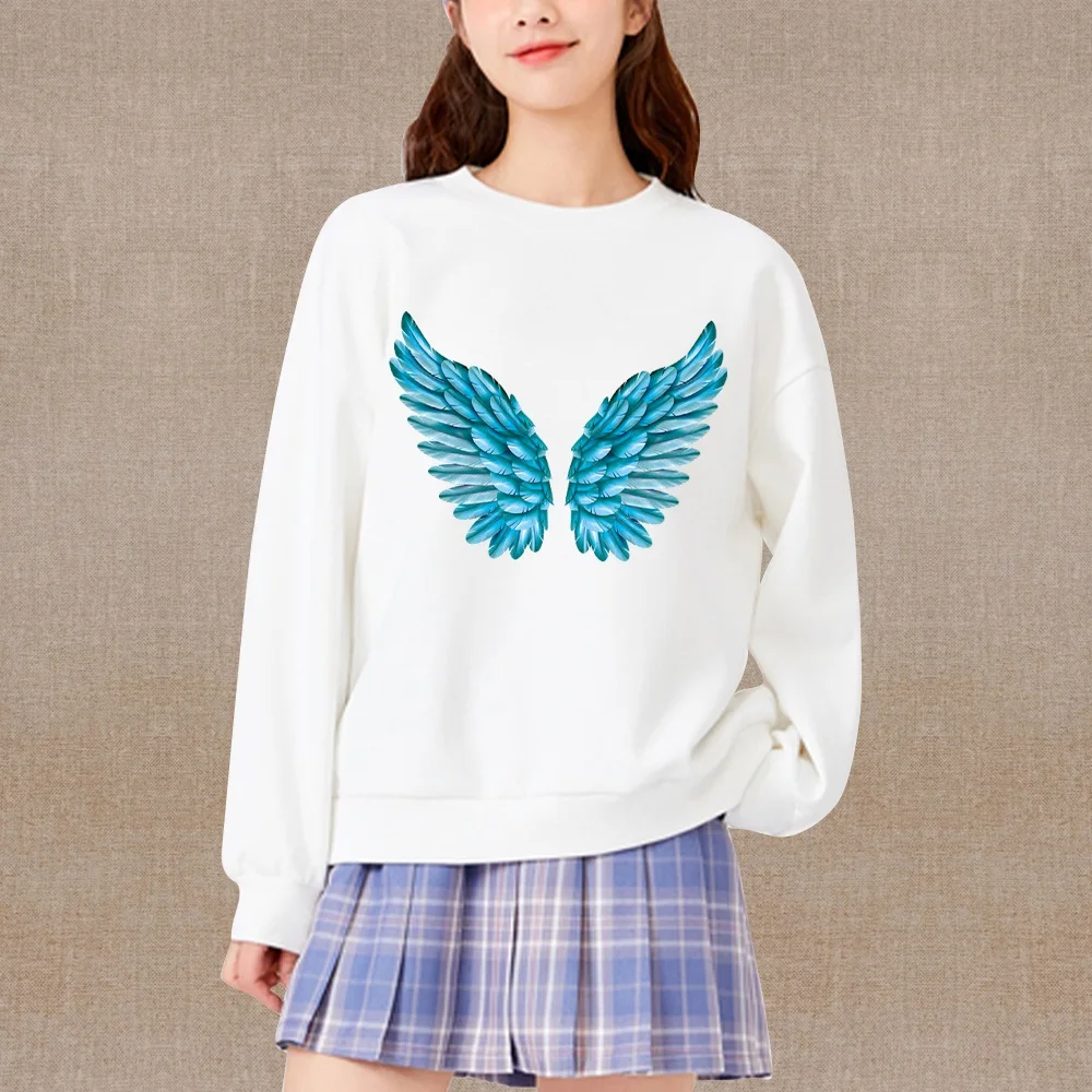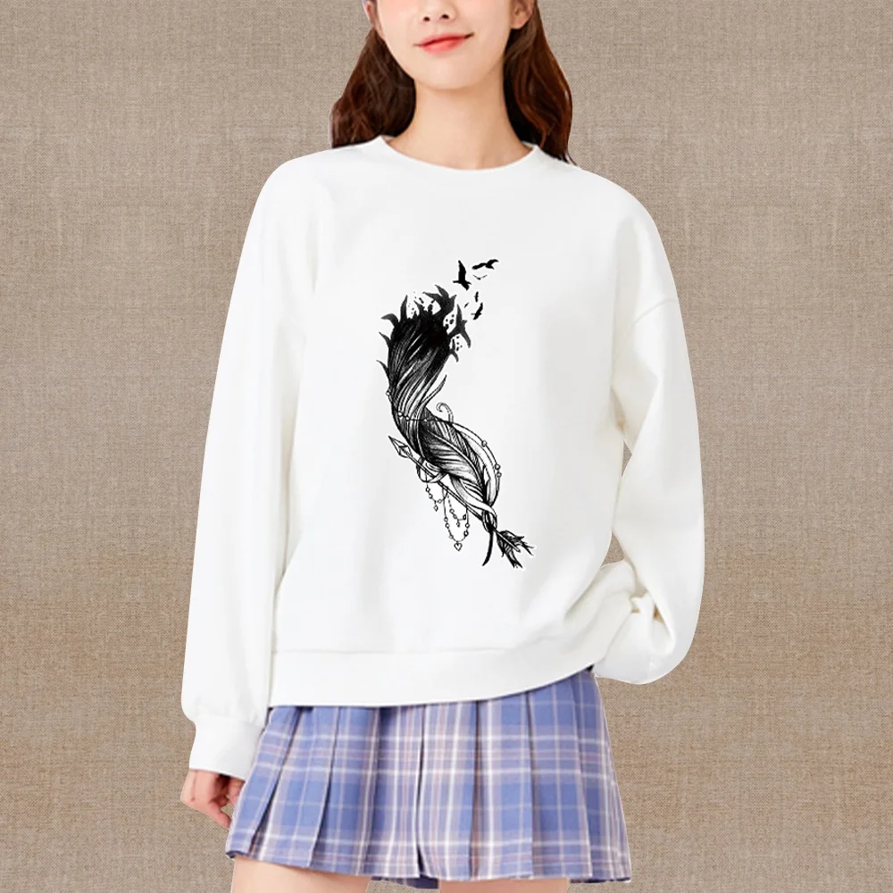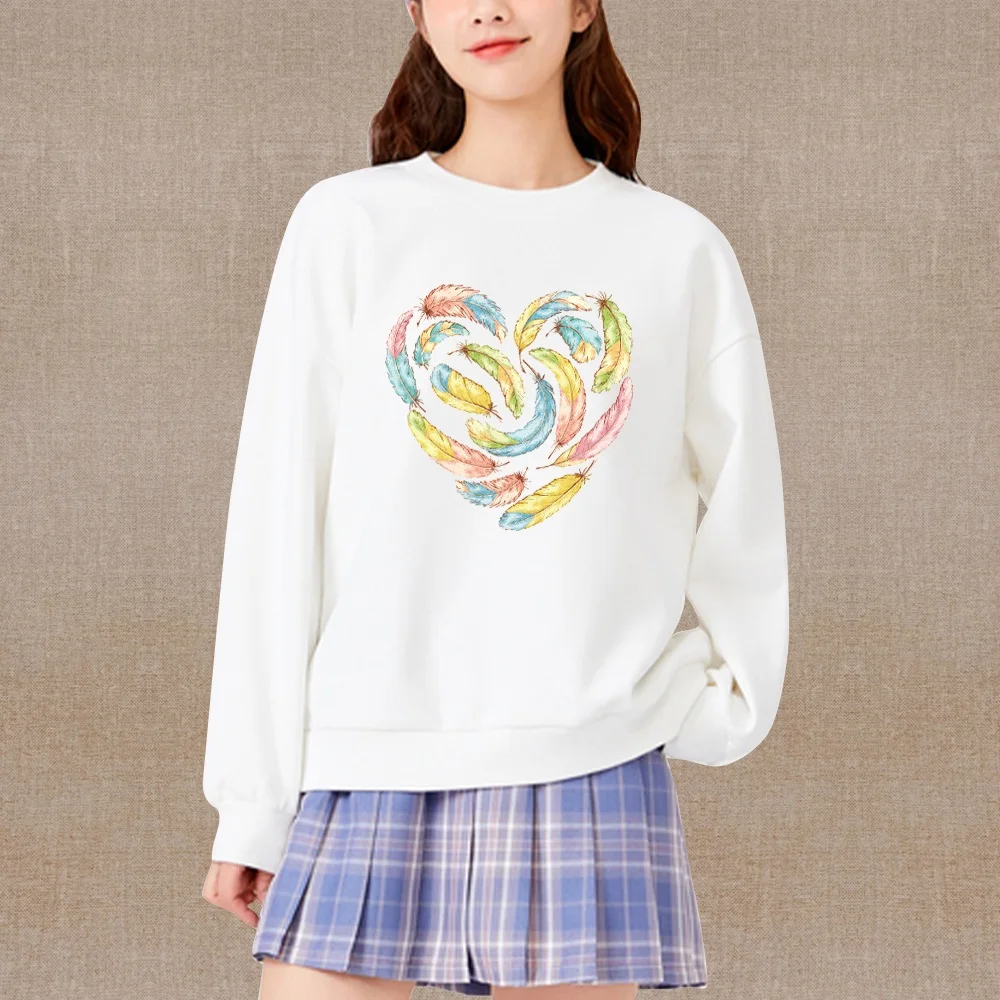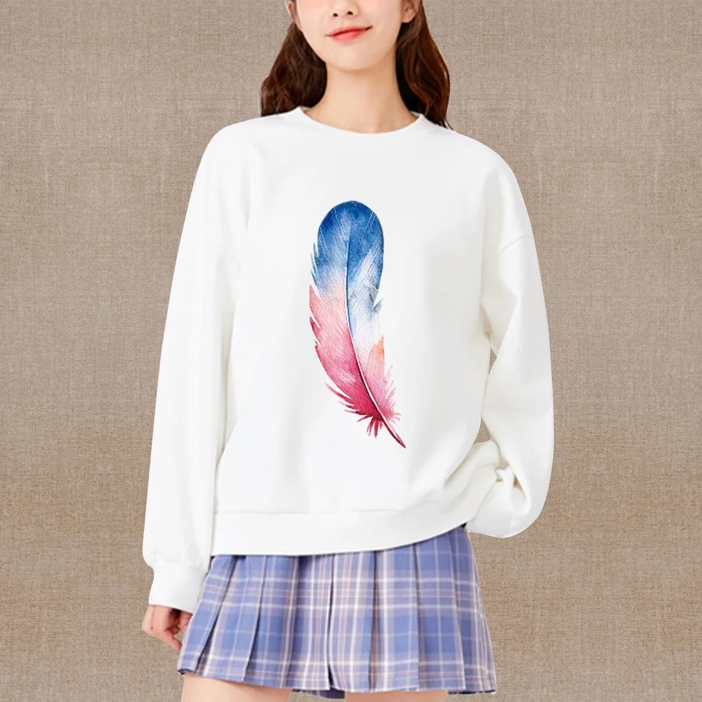 Женская толстовка с длинным рукавом, модный белый пуловер, серия с принтом цветных перьев и круглым вырезом, повседневная Осенняя теплая мягкая толстовка