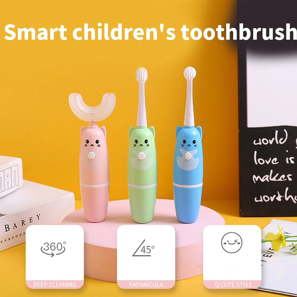 360 градусов u-образный силиконовый Usb ультразвуковая зубная щетка для рта с мультяшным рисунком Умная Автоматическая электрическая зубная щетка для детей