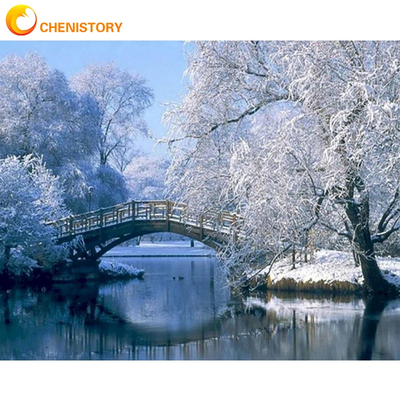 CHENISTORY зимняя сцена краска по номерам мост DIY рамка на холсте масляная краска для взрослых Картина Краска по номерам декор искусство