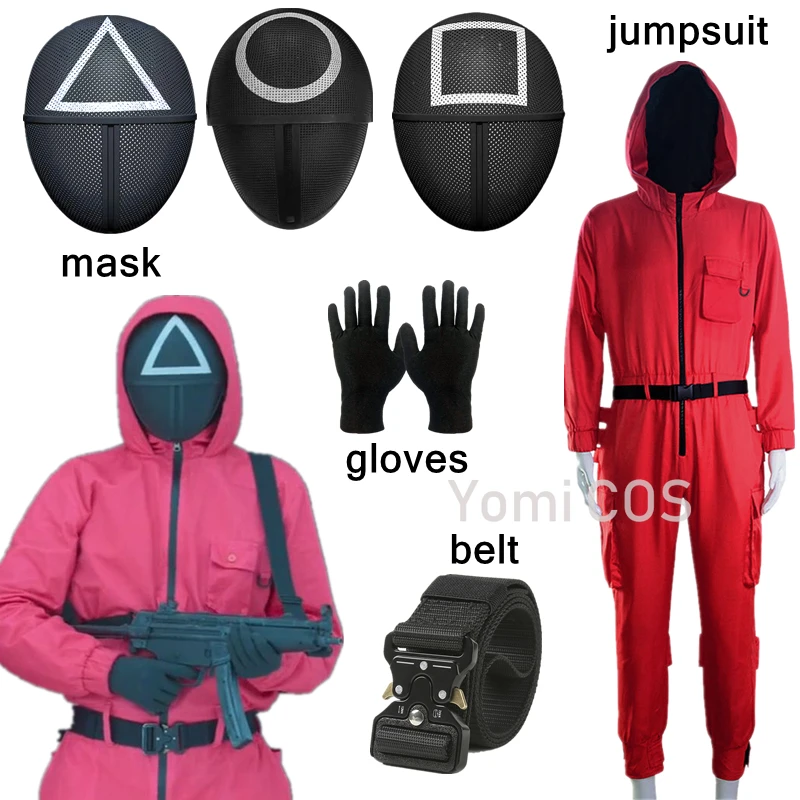 SYJ ТВ кальмар игра Красный Комбинезон Маска пояс перчатки косплей ...
