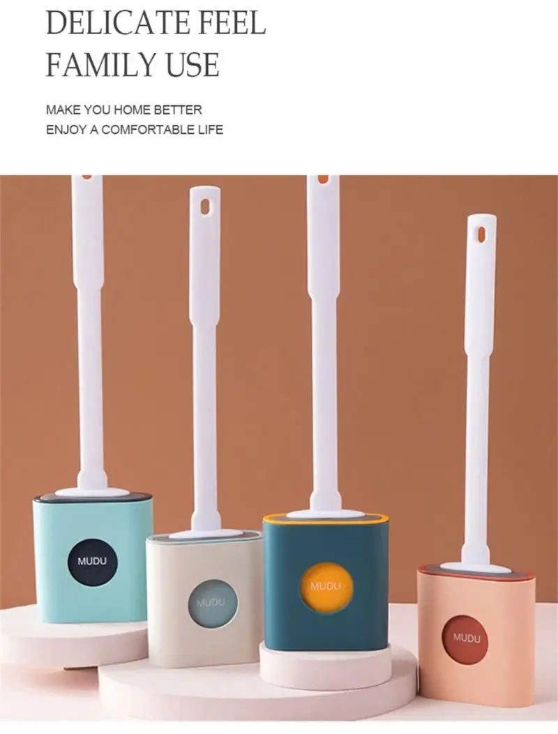 Щетка для унитаза с защитой от протечек и основанием, силиконовая мягкая щетка с плоской головкой и быстросохнущим держателем