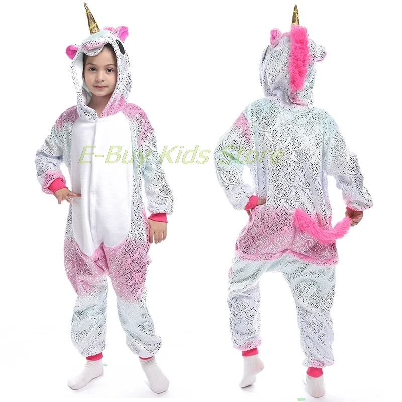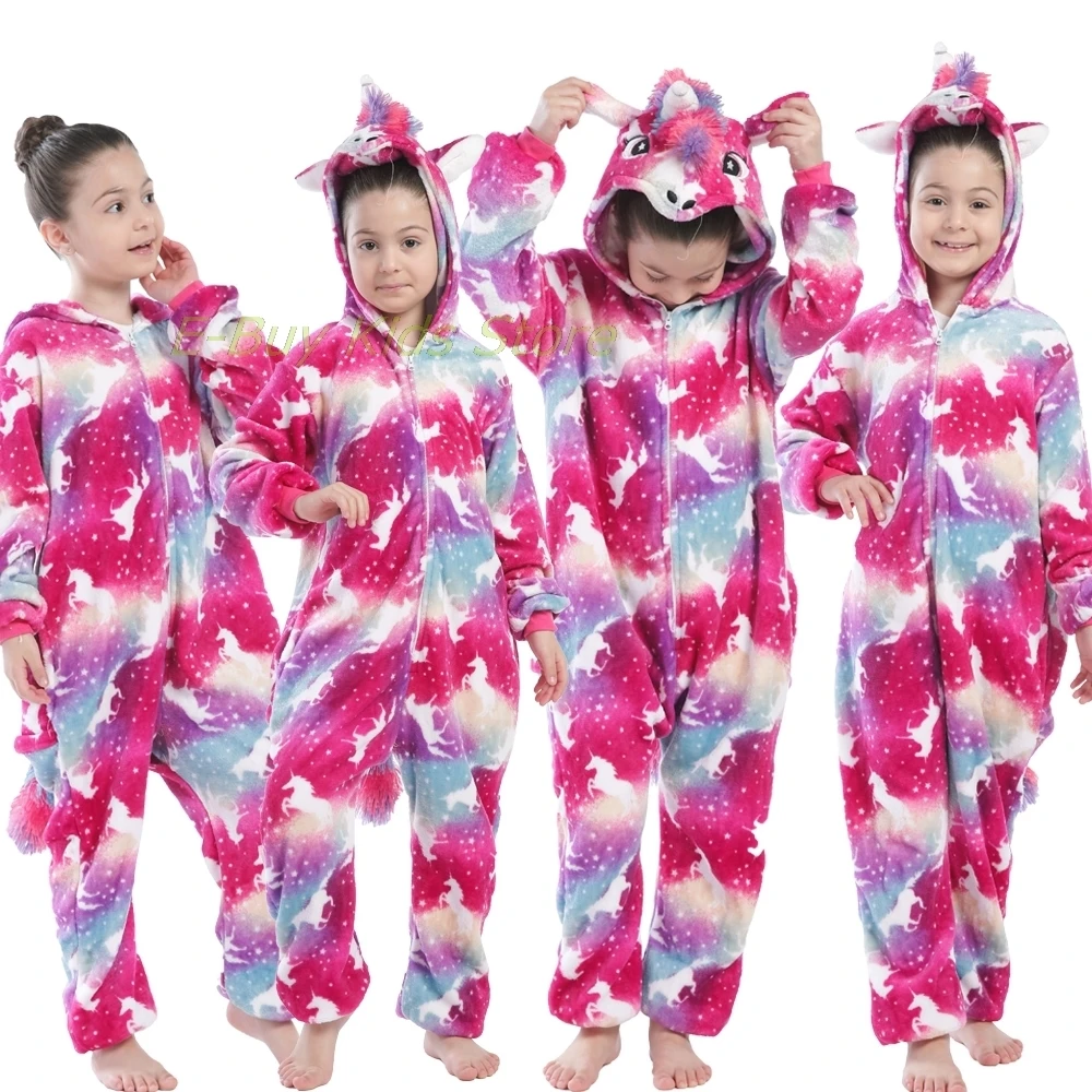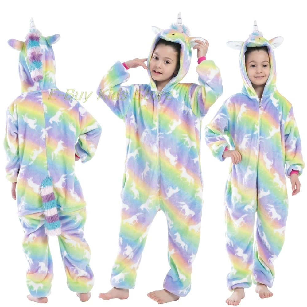 Пижама-кигуруми с капюшоном в виде единорога для детей, Детский костюм для косплея с радужными животными, комбинезоны для мальчиков и девочек 4, 6, 8, 12 лет, Аниме Пижама