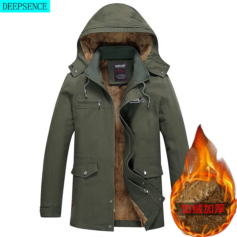 Мужская зимняя длинная куртка с капюшоном и плюшевой подкладкой-25 ...