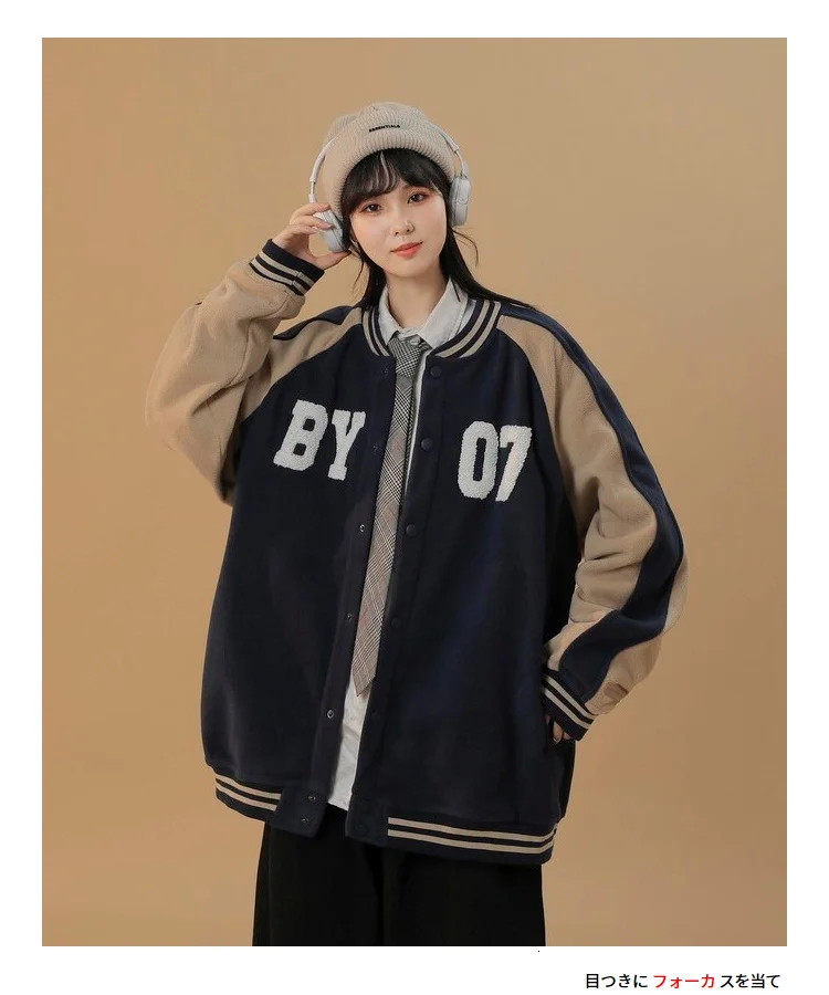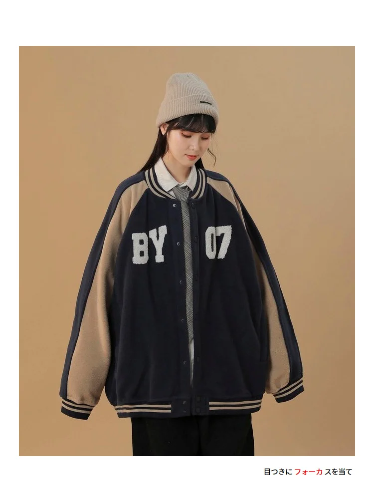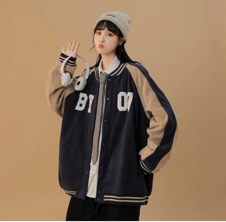 Женская флисовая бейсбольная куртка Hybskr с вышивкой, уличная одежда, винтажное Женское пальто, Повседневная Свободная Осенняя модная Брендовая верхняя одежда