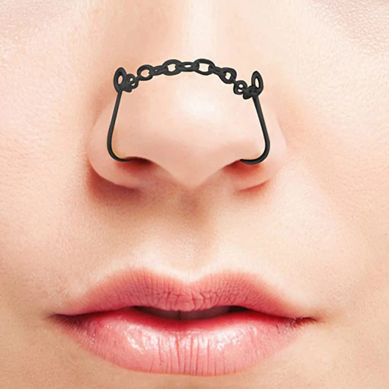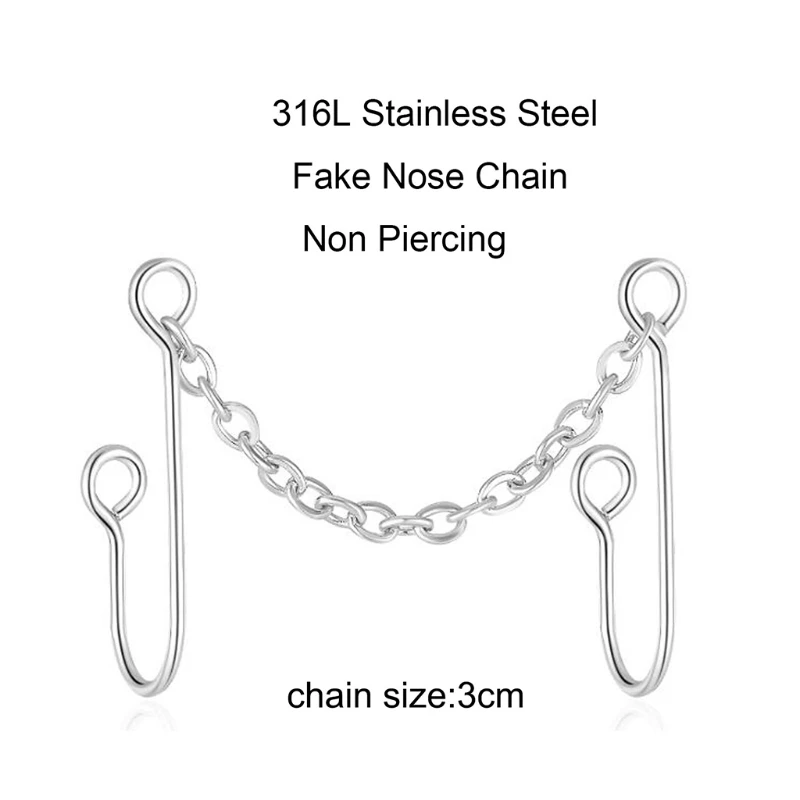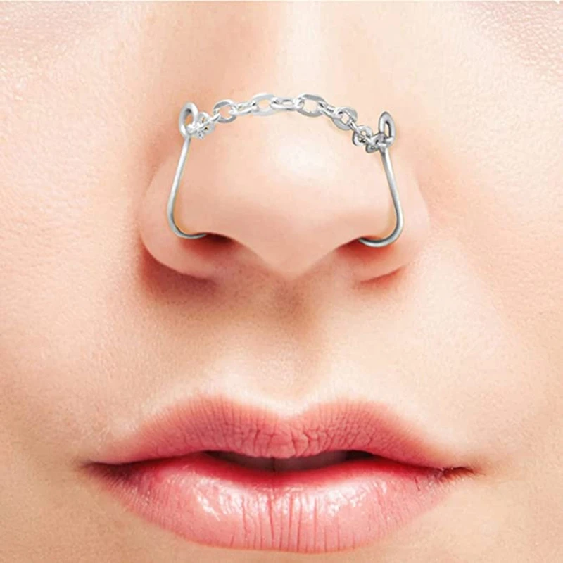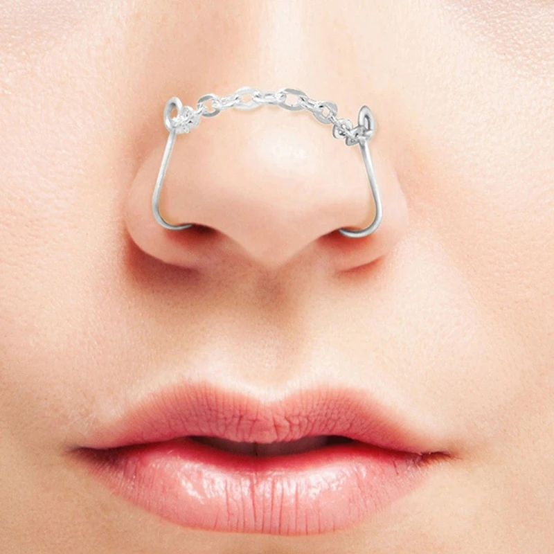 Фальшивый нос из нержавеющей стали, зажим, Женское кольцо для носа серебристогозолотистогочерного цвета, неперфорированное кольцо для носа с цепью для женщин
