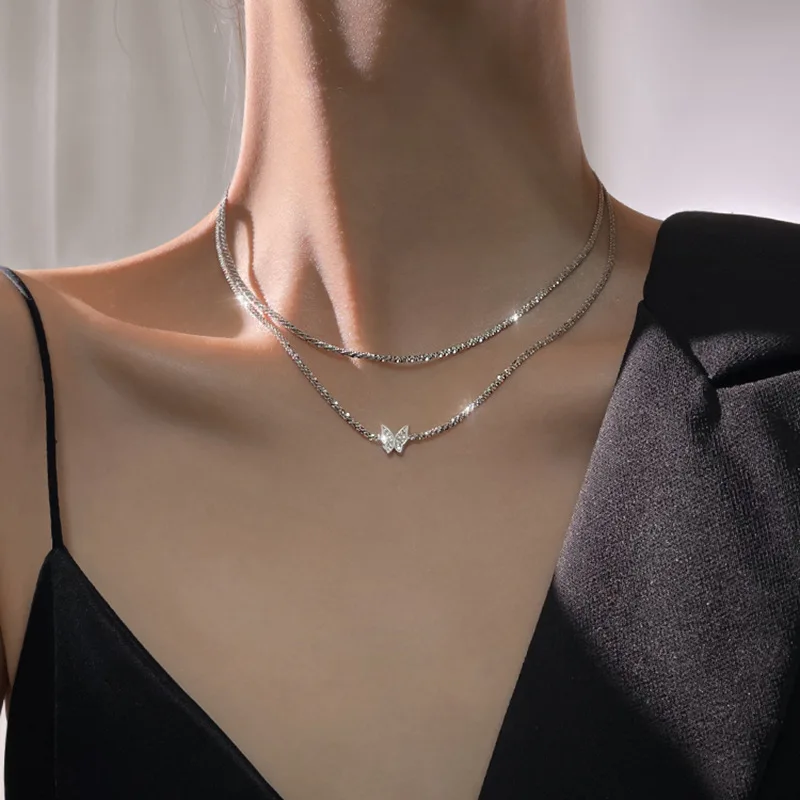 Женская подвеска-бабочка MEYRROYU, из стерлингового серебра с фианитами, ожерелье с цепочкой Гипсофилы, сверкающий подарок