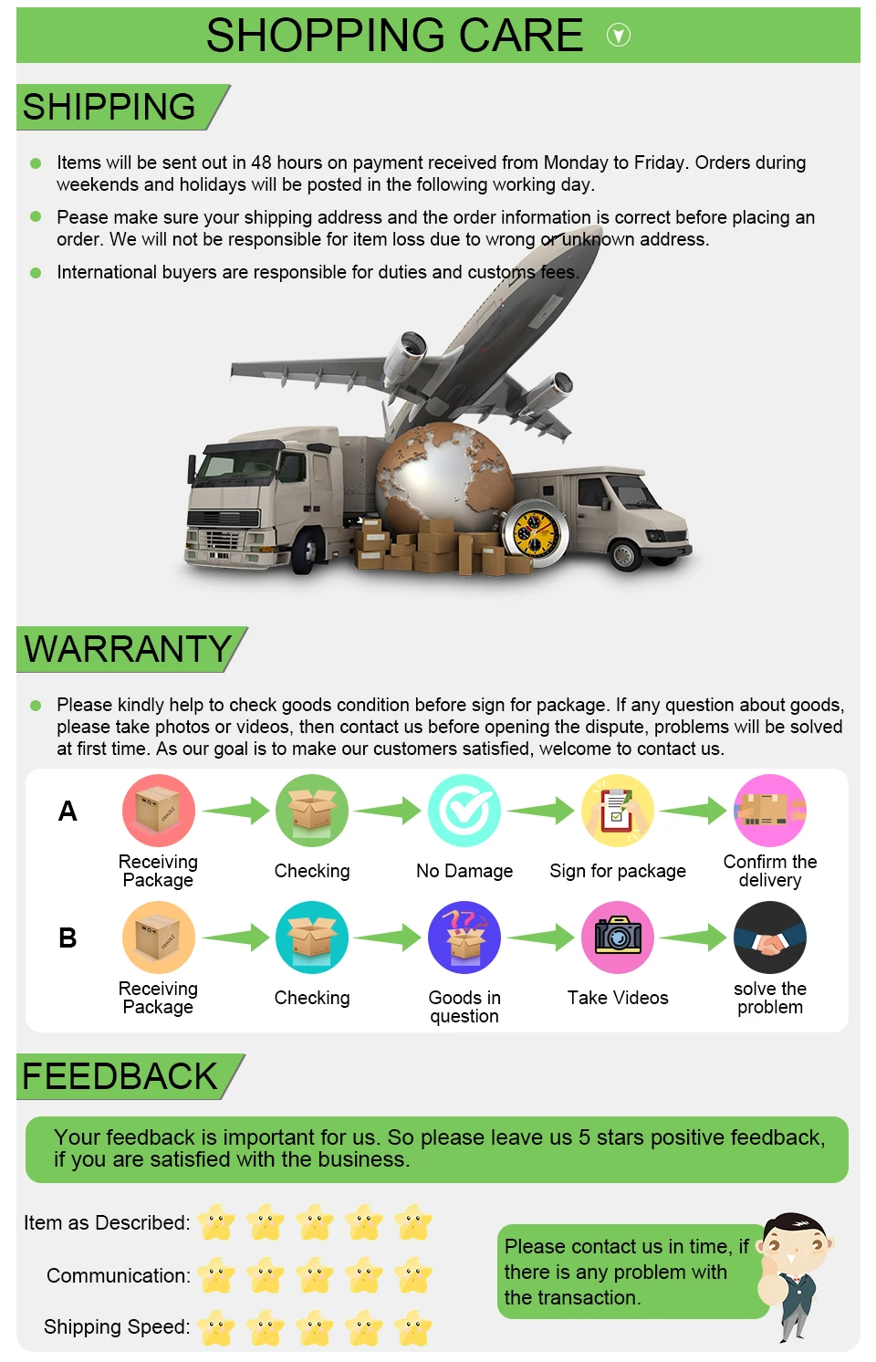 5. Если у продукта возникли проблемы в течение 365 дней после подтверждения получения, поддержка возврата и возврата в течение 15 дней, или мы заменим новую машину непосредственно для вас, но сначала свяжитесь с нами, чтобы связаться (24 часа обслуживания клиентов)