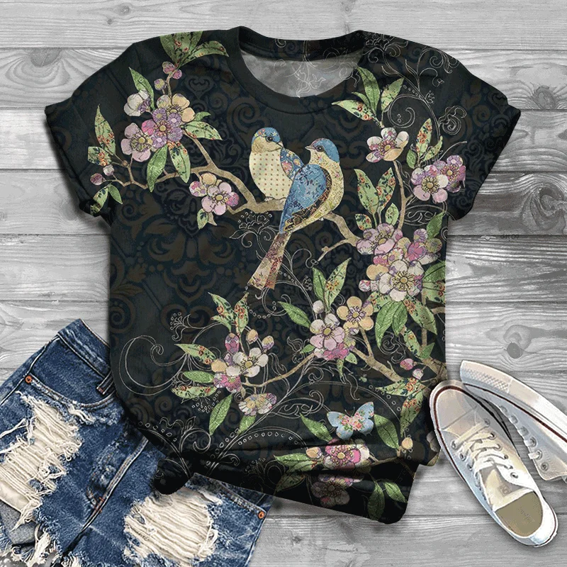 Дешевая Женская одежда, удобная футболка из Ткани в стиле Харадзюку, летняя женская футболка с коротким рукавом и красивой птицей