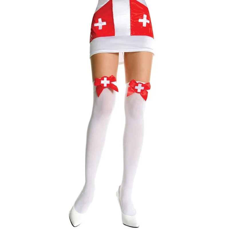 Чулки женские сексуальные, медсестры, Порно чулки выше колена с бантом и перекрестными лямками, экзотическое нижнее белье, высокие носки до бедра, косплей, нижнее белье, носки