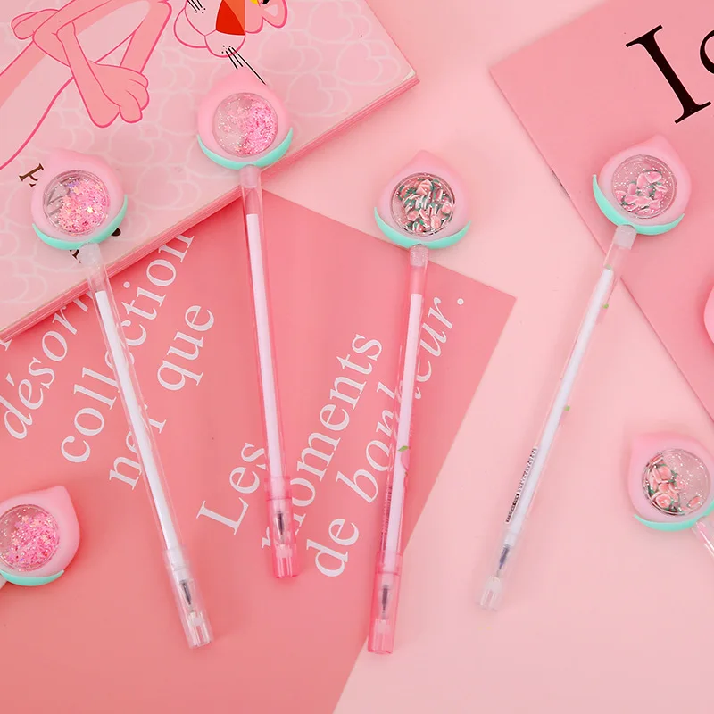 1 Розовая гелевая ручка в форме сердца девушки персиковые блестки креативная Милая Черная ручка на водной основе канцелярские принадлежности подарок авторучка для подписи