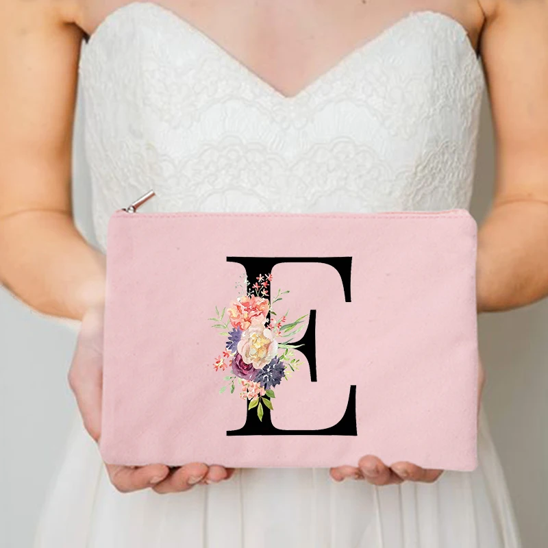 Цветочная сумка для макияжа с надписью, для подружки невесты, для праздника, свадьбы, девичника, подарки для вечеринки, холщовая монограмма, косметичка на молнии