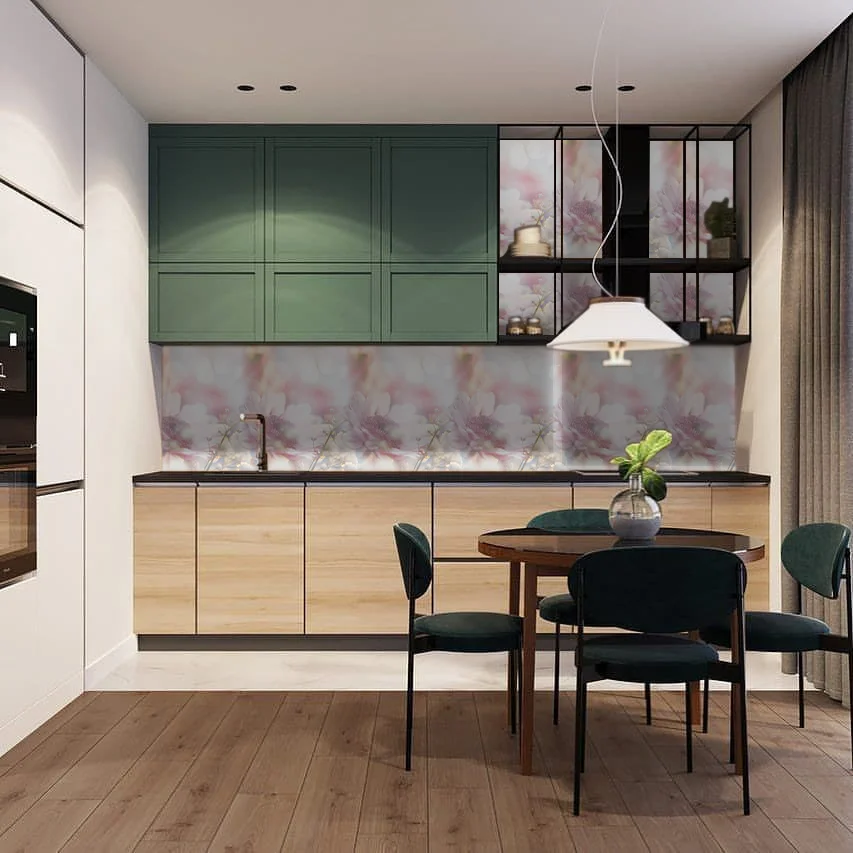 Кухонный фартук для пространства междунавесными шкафами, плитой и столешницейне просто защищает стены от влаги,копоти и загрязнений, но и придаеткухне воздушность, наполняет новымикрасками.Для его монтажа не требуетсядлительная подготовка и выравниваниестен. С его помощью можно быстро скрытьшероховатости и другие недостаткинастенной поверхности, а также придатьнеповторимую элегантность интерьеру.