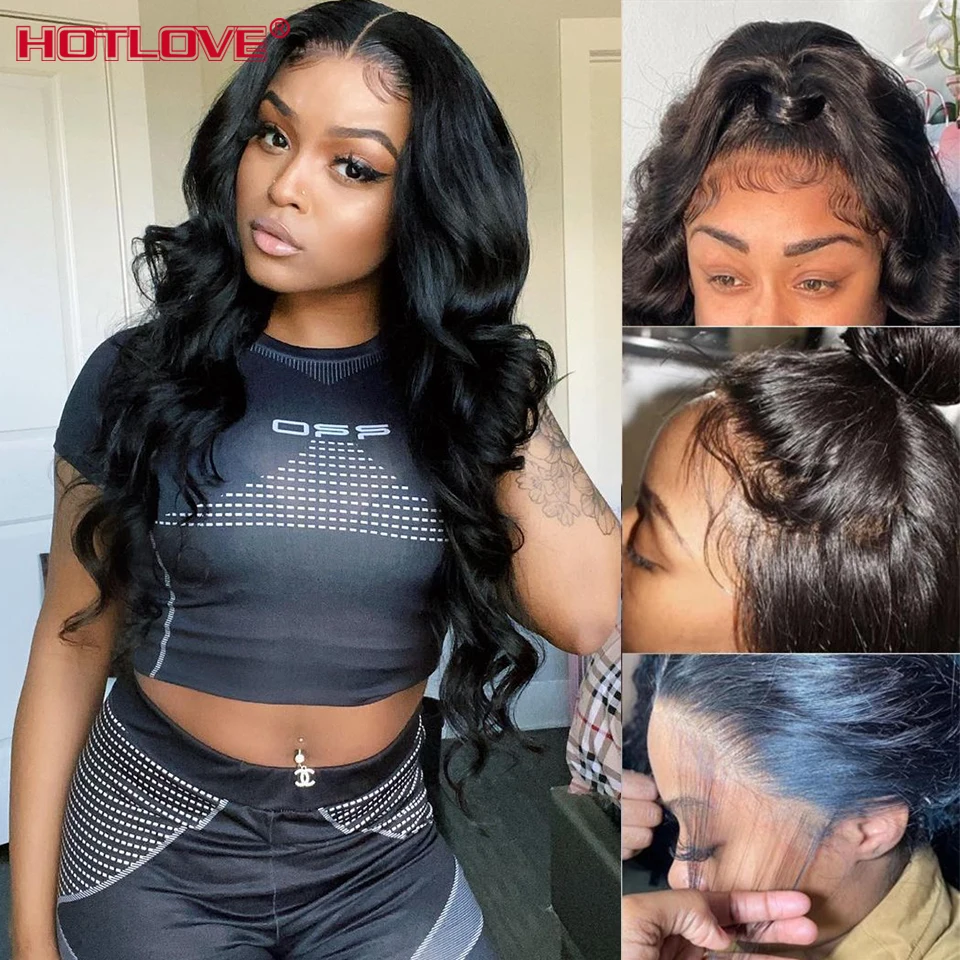 Парики из человеческих волос с волнистыми прядями Hotlove 13x4 индийские прозрачные кружевные передние человеческие волосы для женщин 150% Remy