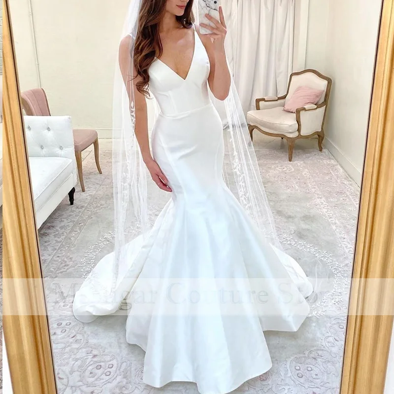Длинные платья в стиле русалки для выпускного вечера 2021 с V-образ...