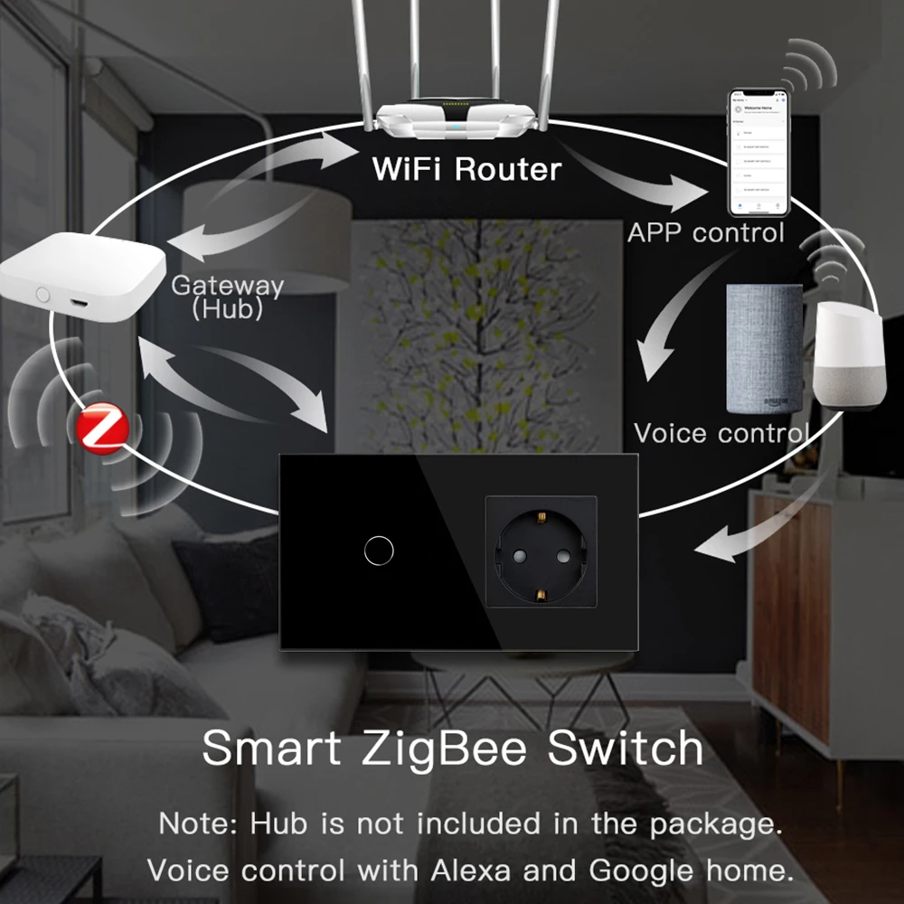 Настенный светильник ель BSEED Tuya Zigbee, не нейтральный, 123 клавиши, управление через Google Home, Alexa, с вилкой европейского стандарта, без Wi-Fi