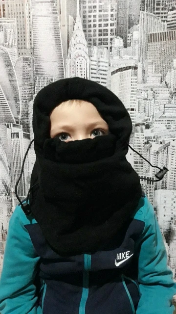 Товаром не довольна, двойной слой возле лица, и одинарный довольно тонкий весь сам капюшон. Как поддева под капюшон в сильный мороз и ветер наверное неплохо, как замена капюшона к куртке, если его нет, то не подходит... Купила, но носить скорее всего не буду, неудобно и для меня не функционально. Убрать/опустить часть,закрывающую нос, тоже неудобно,мешает.