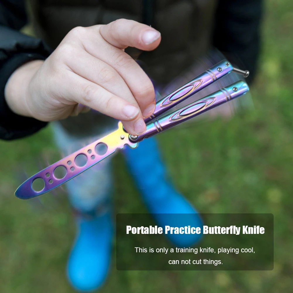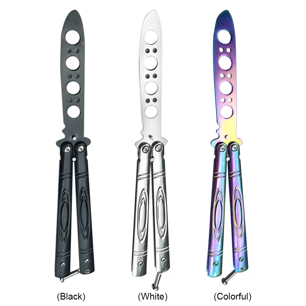 Портативный тренировочный нож с бабочками из нержавеющей стали, складные тупые тренировочные ножи для занятий на открытом воздухе, тренировочная игра для подарковХарактеристика:Металл, устойчив к игре и падению.Стальной материал, более прочный и не легко сломать.Нет лезвия тупым ножом, безопаснее, нет опасности, не беспокойтесь.Легкая технология полировки поверхности, металлическая текстура.Это только тренировочный нож, играющий в прохладу, не может резать вещи.Спецификация:Размер: длина: 21 см/8,27 дюйма (в разложенном виде), 9 см/3,54 дюйма (закрытый)Лезвие Толщина: 2,5 мм/0.1inМатериал: нержавеющая стальЦвет: черный, белый, цветнойПримечание:В связи с различиями мониторов и эффектами освещения реальный цвет товара может немного отличаться от цвета на фотографиях. Спасибо!Возможны отклонения в 1-2 см вследствие измерений вручную.