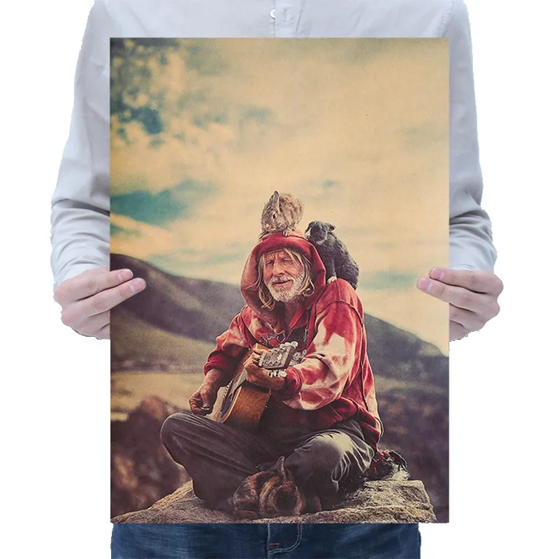 Постер в стиле старого хиппи из крафт-бумаги, украшение для дома, рисование, наклейки на стену с рисунком, подарок, 50, 5x35 см
