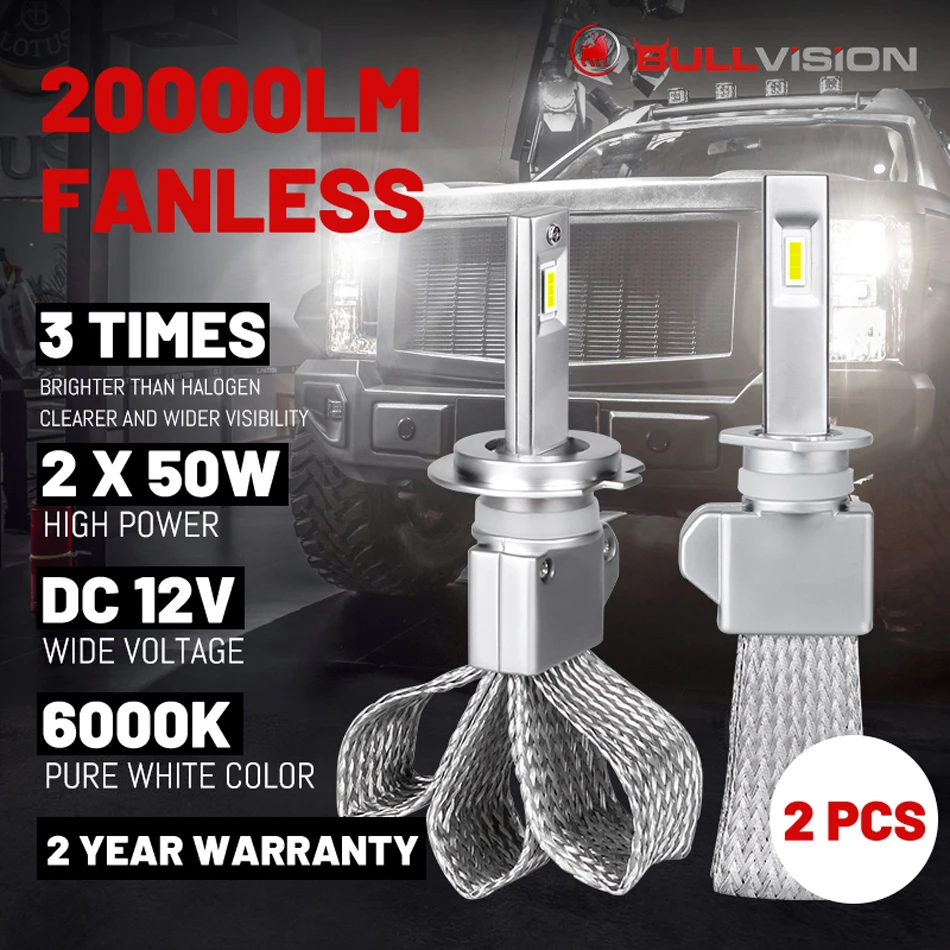 Светодиодные фары Bullvision H8, фары H4, H11, H7, H1, H9, 9005, 9006, HB3, HB4 без вентилятора, холодные лампы для объектива проектора, белые чипы CSP 6000K