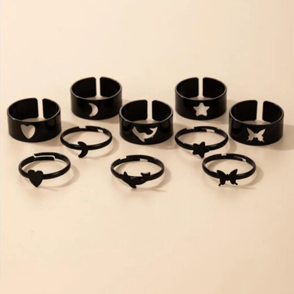 Комплект колец в стиле панк для женщин, комплект из 2 предметов с кольцами в форме сердца, звезды, бабочки, Луны, с геометрическим рисунком животного, регулируемые винтажные готические ювелирные украшения для пар