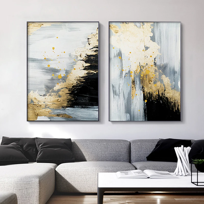 Скандинавская Золотая Роскошная Картина на холсте с золотыми листья...