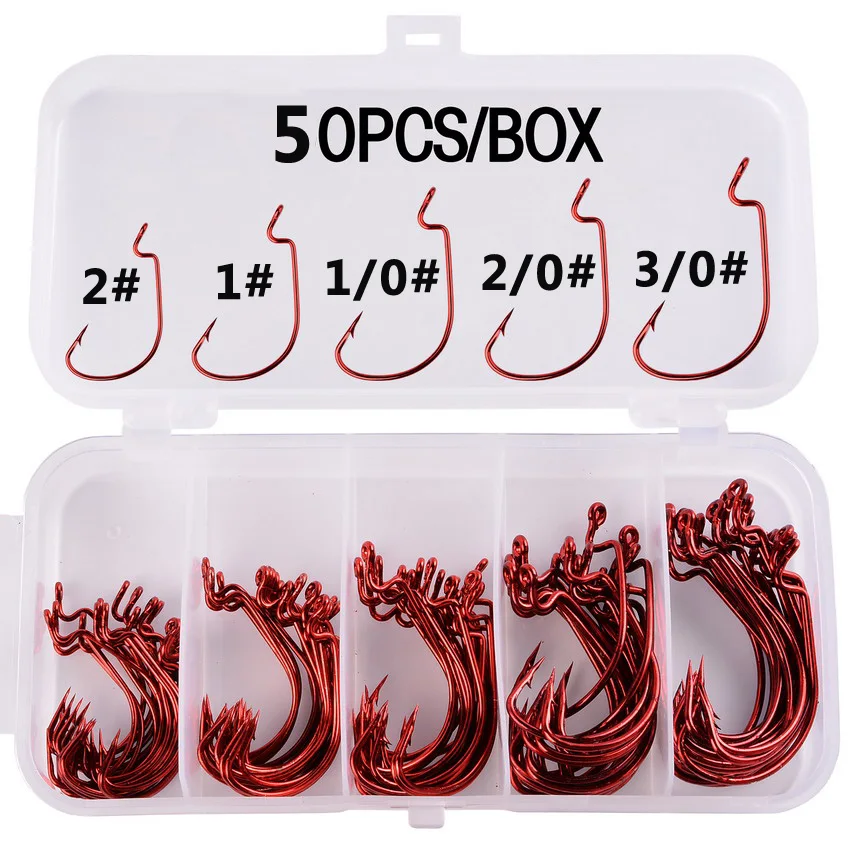 Кол-во: 50 шт./лот в пластиковой коробке Размер: 5/0 #4/0 #3/0 #2/0 #1/0 #1 #2 #4 #6 # Цвет: черный, красный Тип: кривошипный крюк