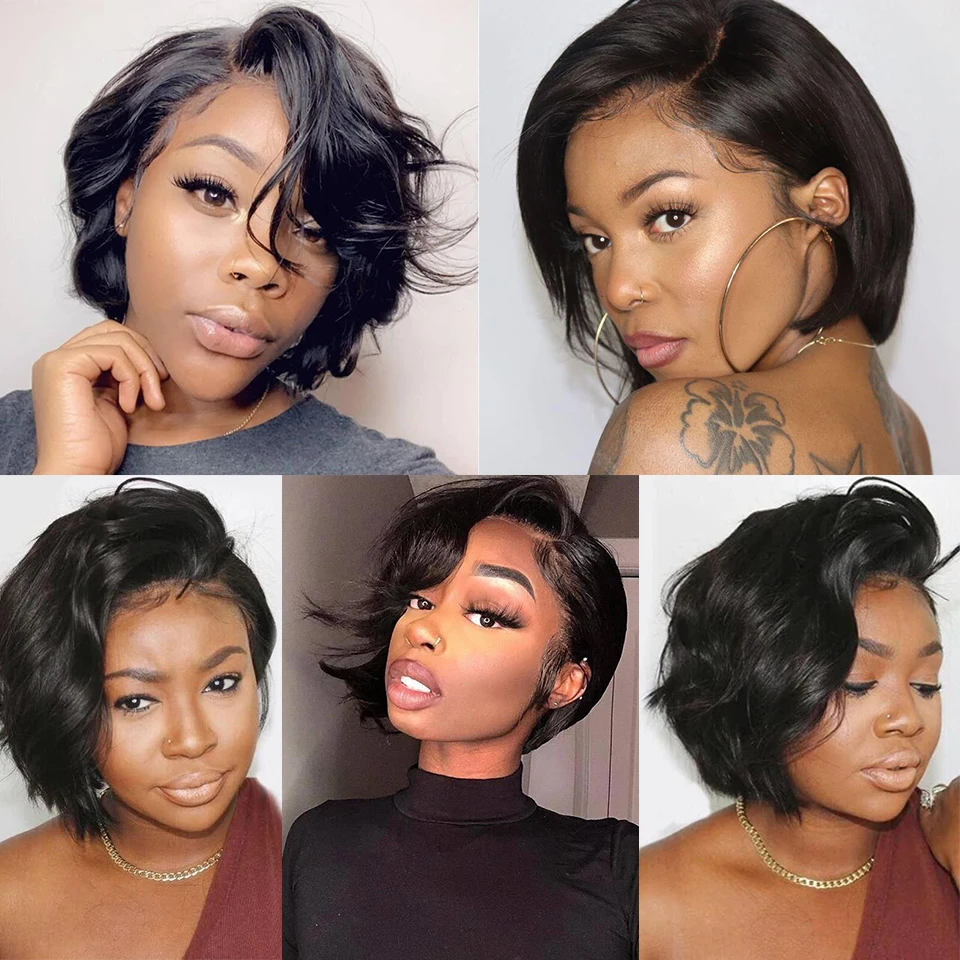 Malaysian Straight Bob Wig Lace Front Human Hair Wigs Short Pixie Cut Wigs For Black Women Pixie Cut Wig Human Hair Cheap Wigs