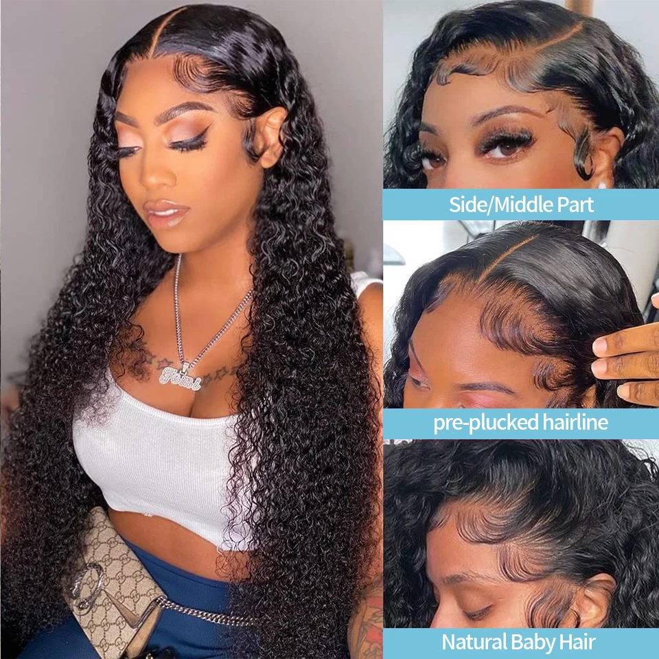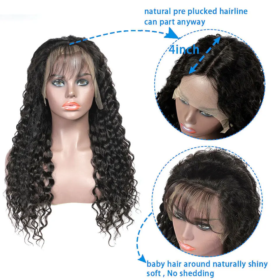 Парики с глубокой волной для фронтальной съемки, парики из натуральных человеческих волос, бразильские кудрявые предварительно выщипанные человеческие парики на сетке для женщин