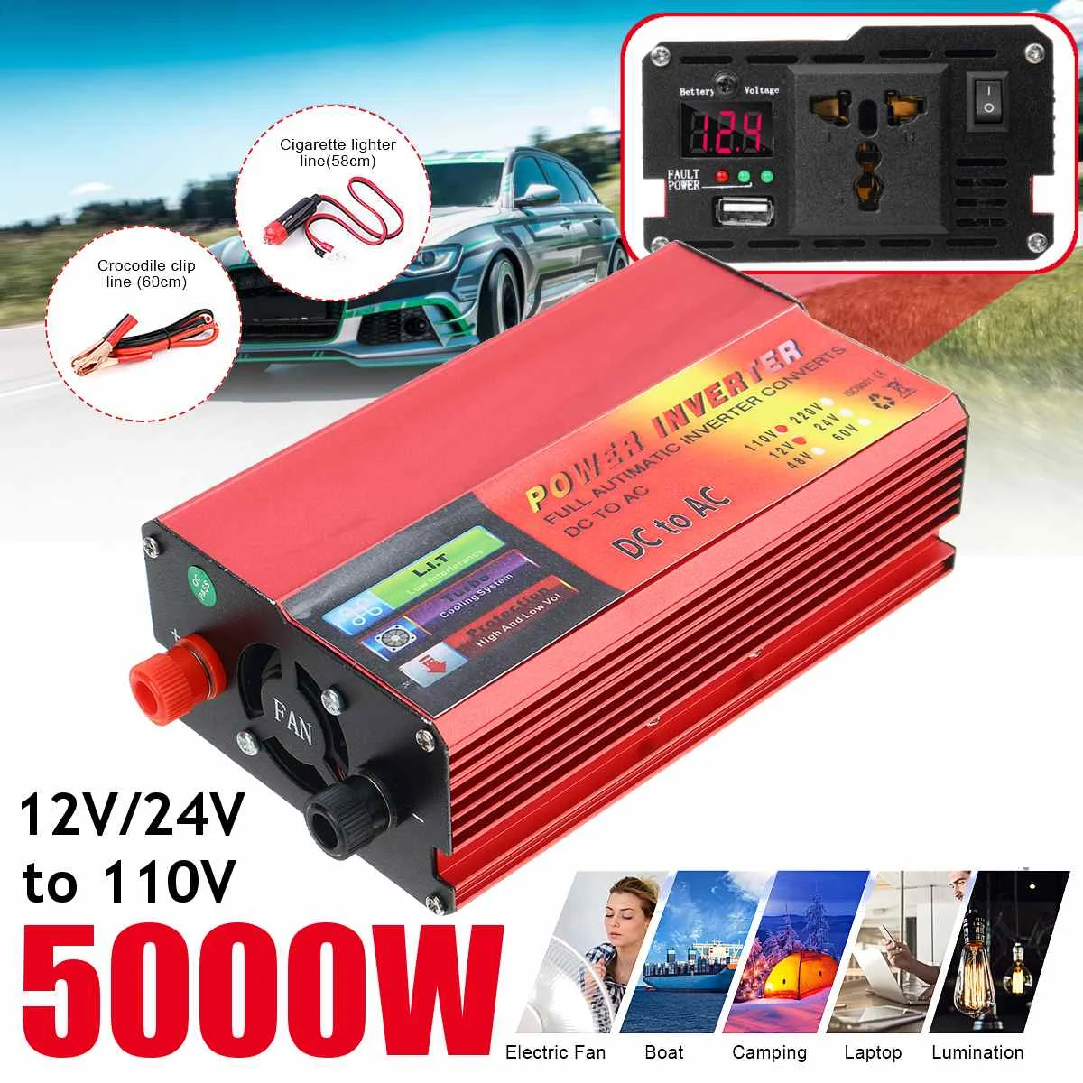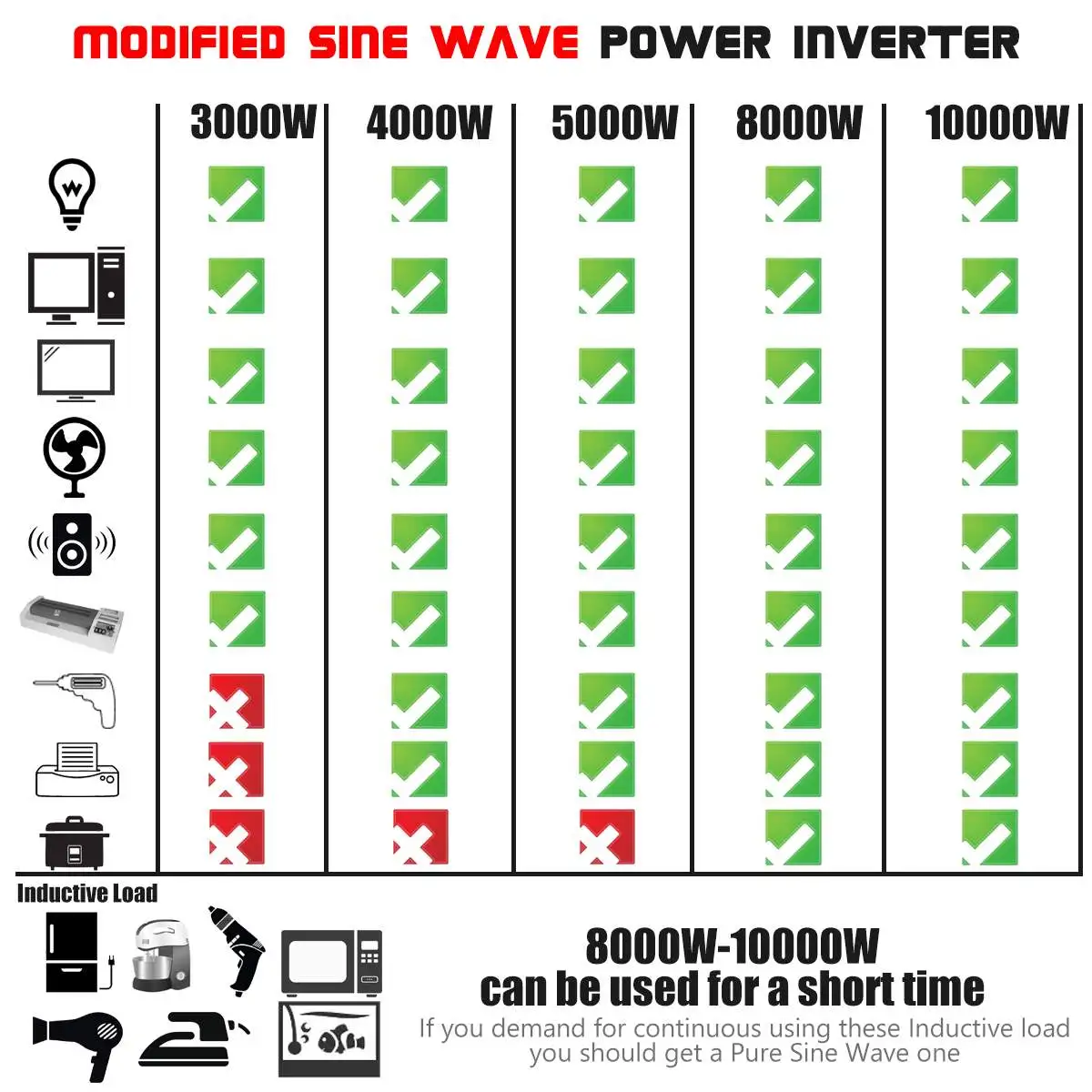 Модифицированный инвертор синусоидальной волны, постоянный ток 12 В, 24 В в переменный ток 110 В, 220 В, 5000 Вт, трансформатор напряжения, Преобразователь мощности, аналогичный + светодиодный дисплей