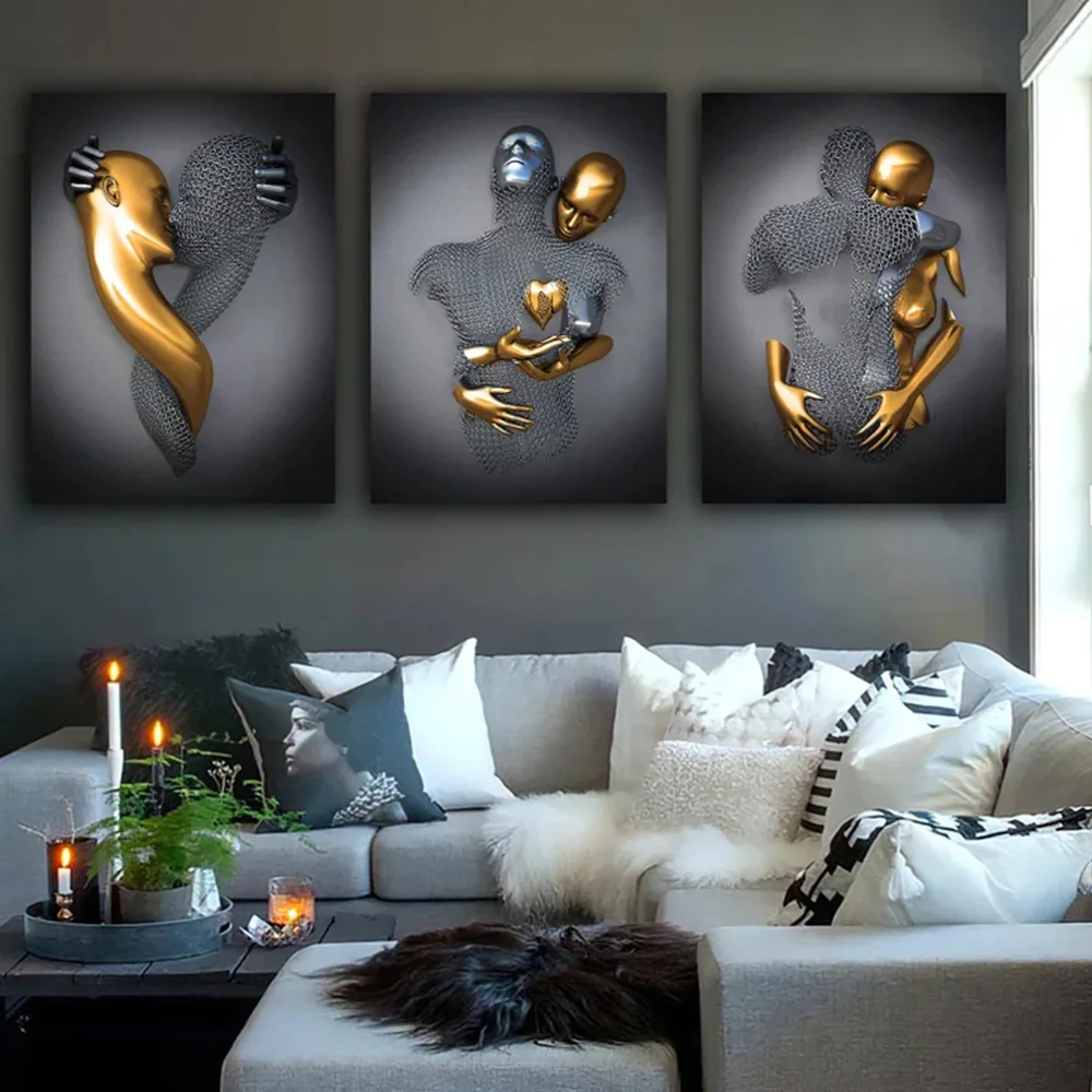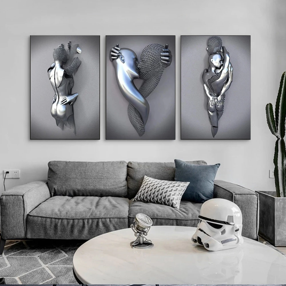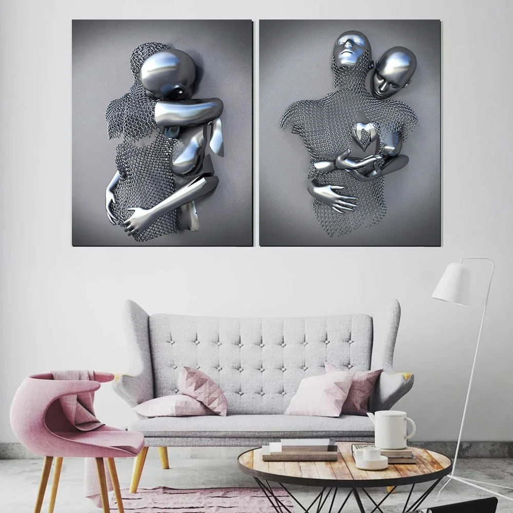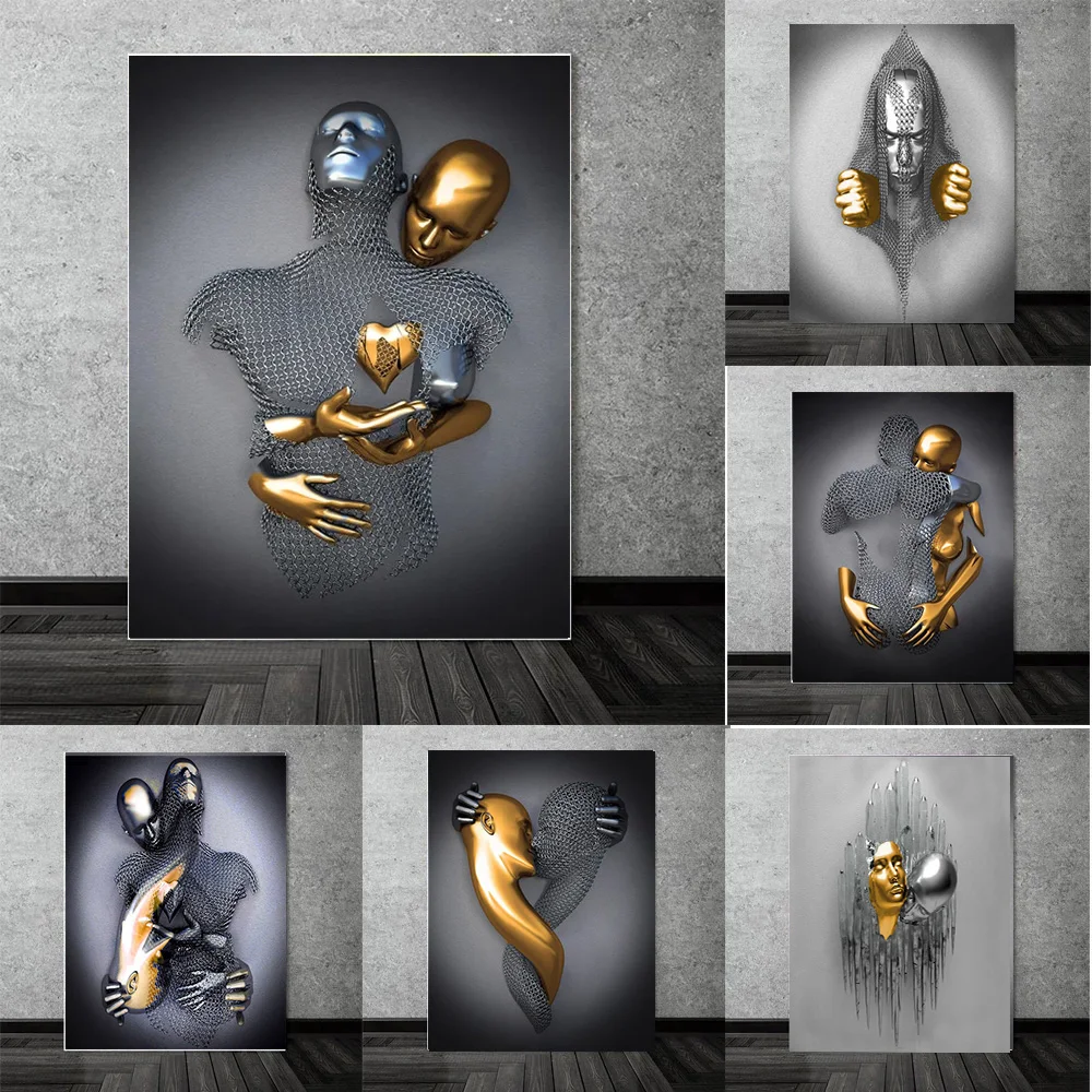Металлическая статуэтка, художественные картины на холсте и принты, Современная Скульптура для влюбленных, Настенная картина, постеры для украшения гостиной и дома