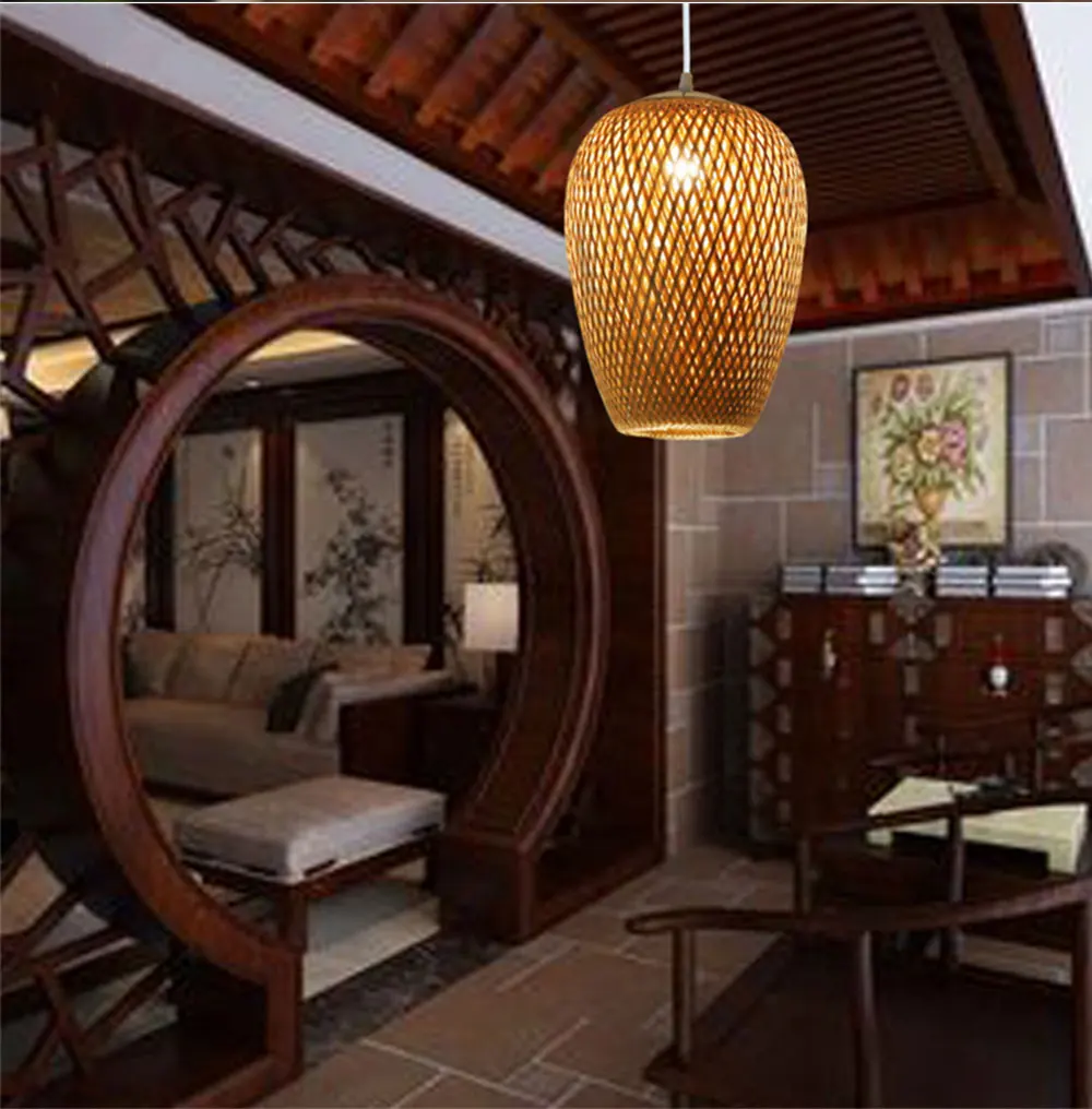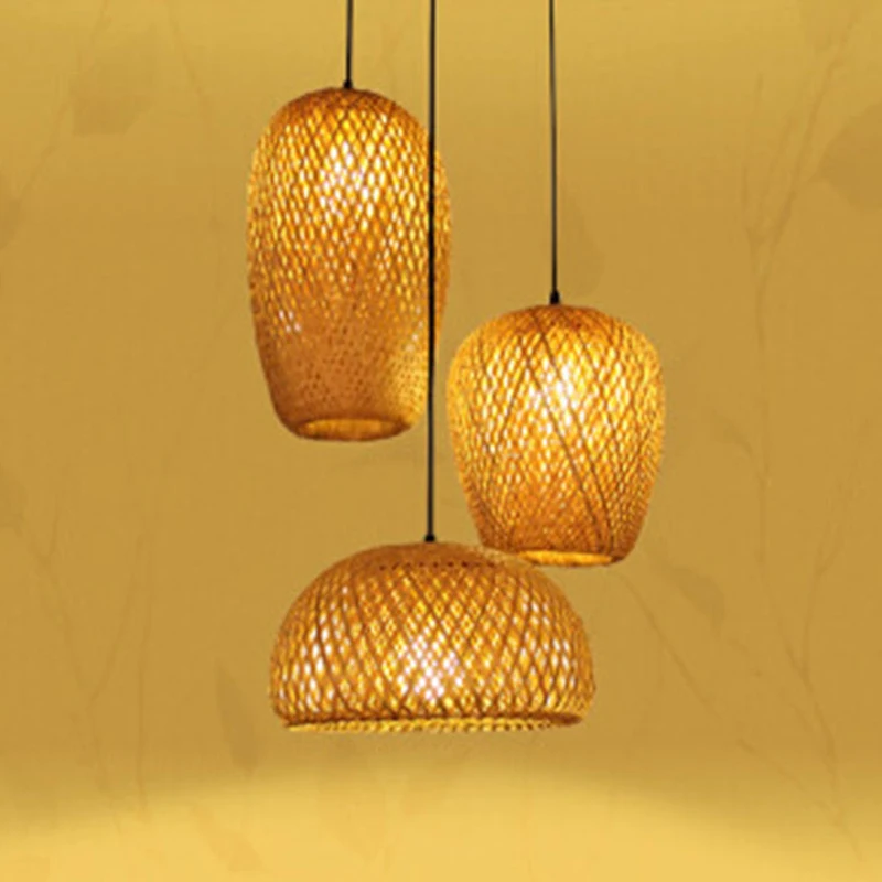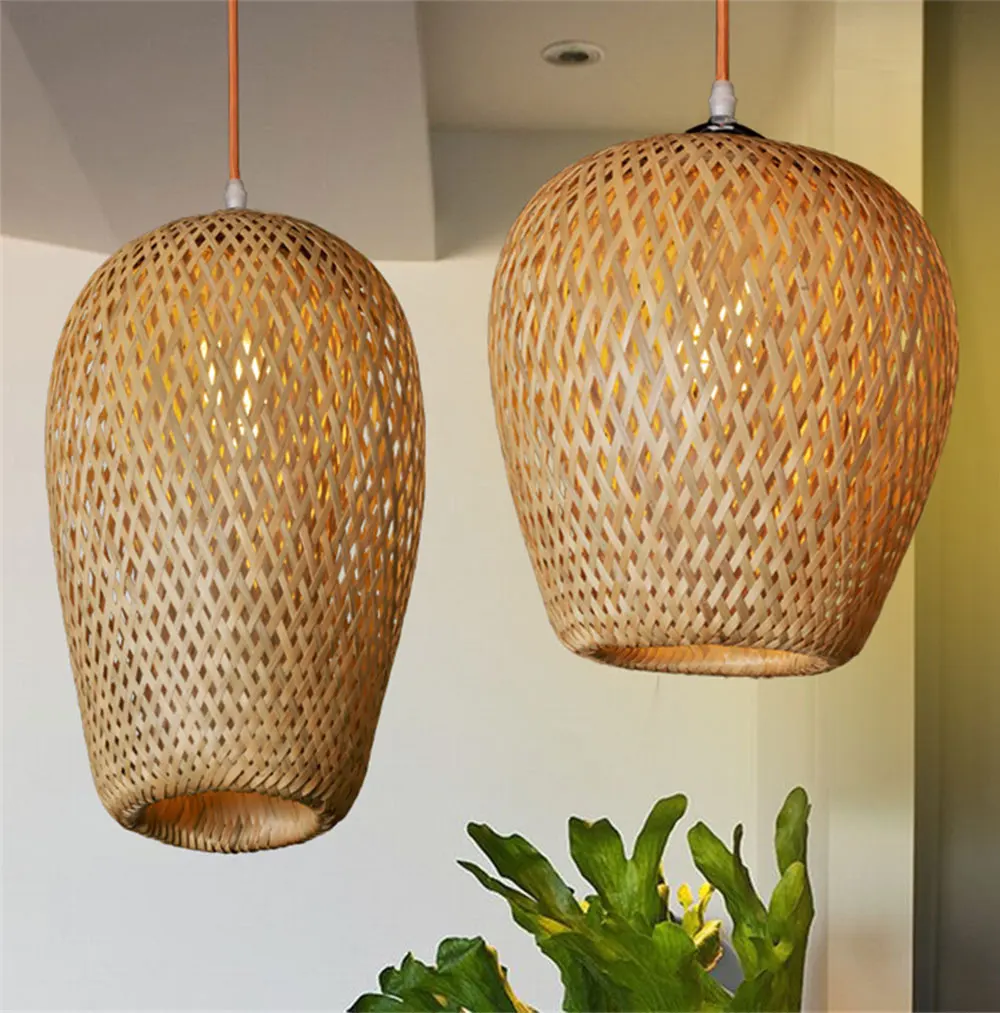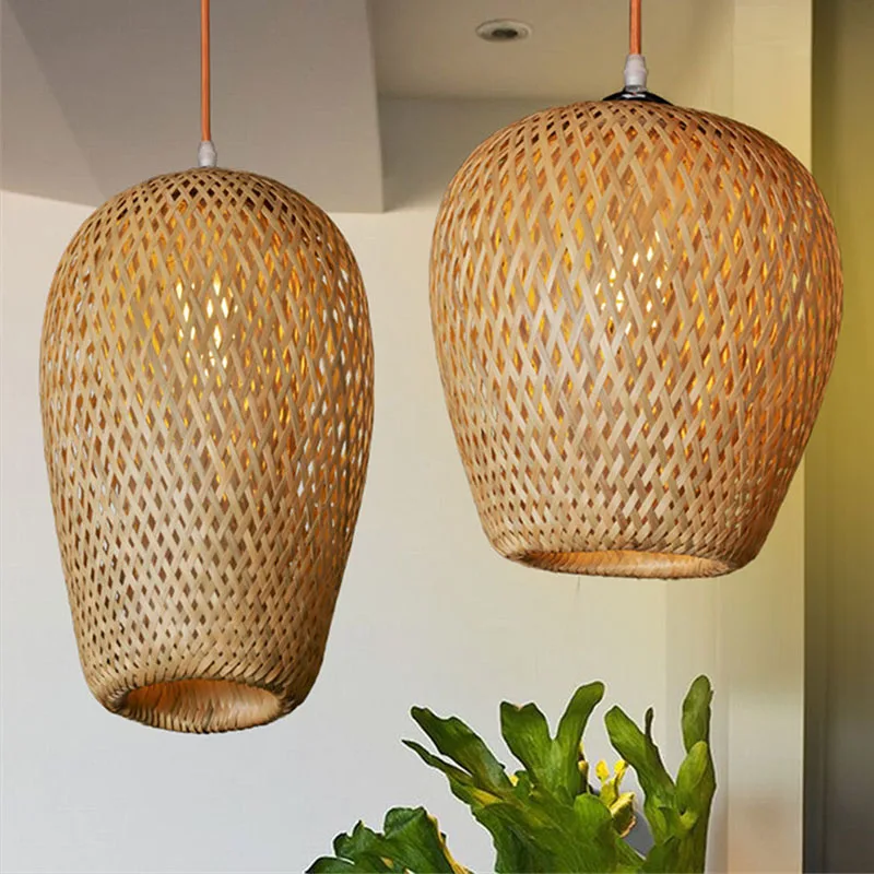 Bamboo Weaving Ceiling LampBamboo Weaving Art DecoHand Knitted Led Pendant Light