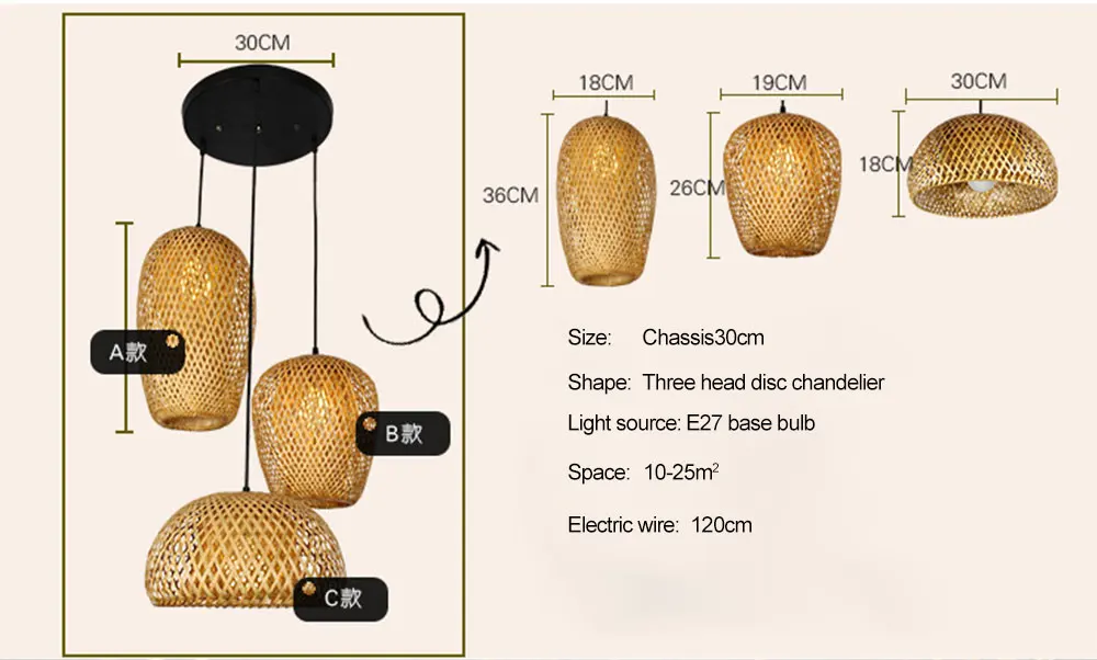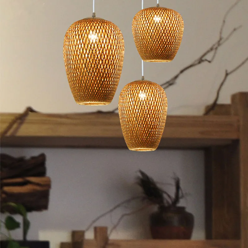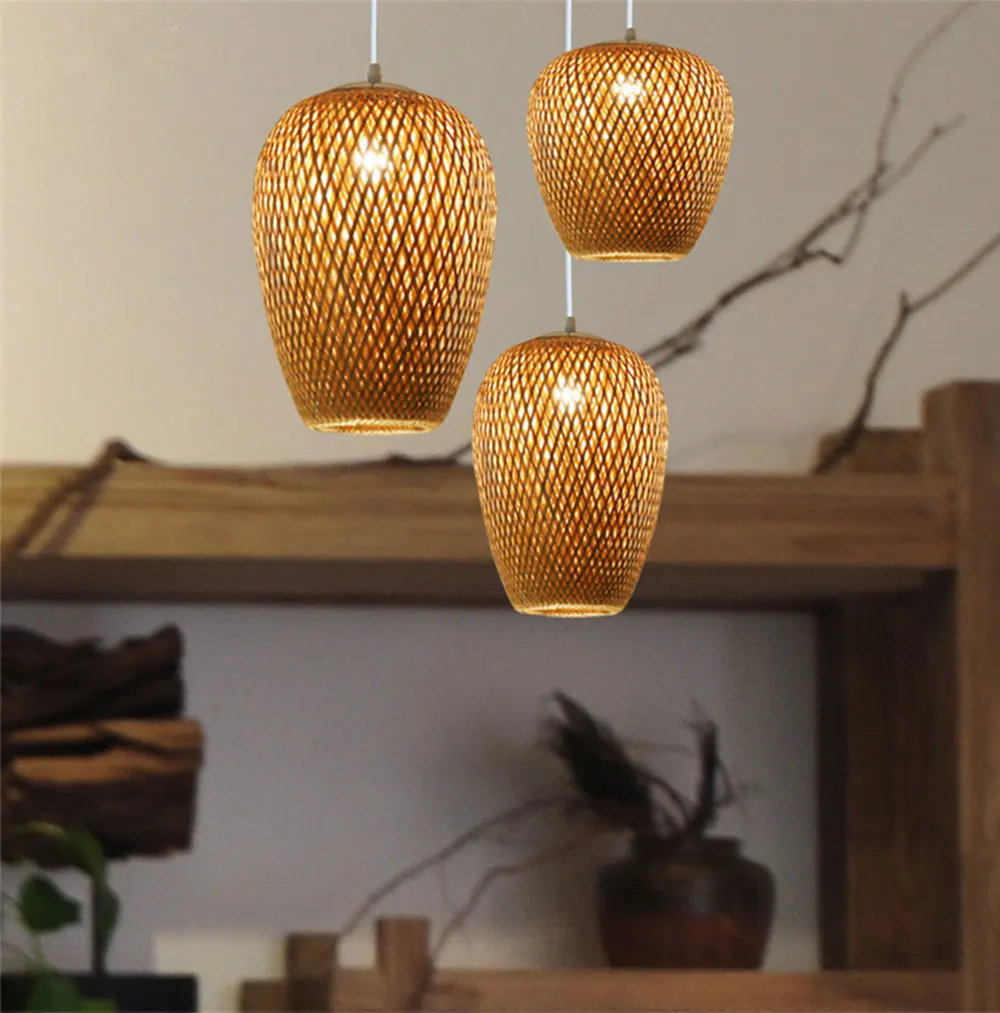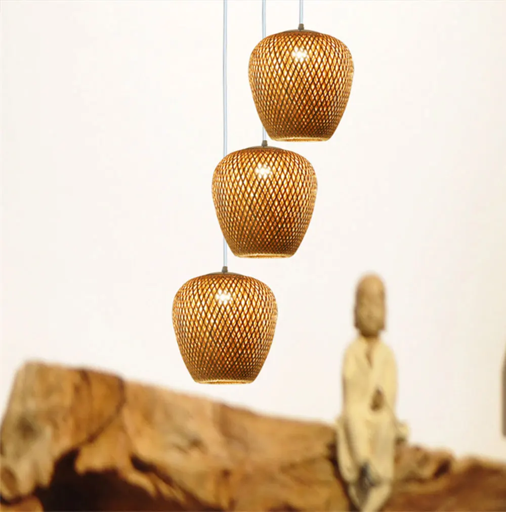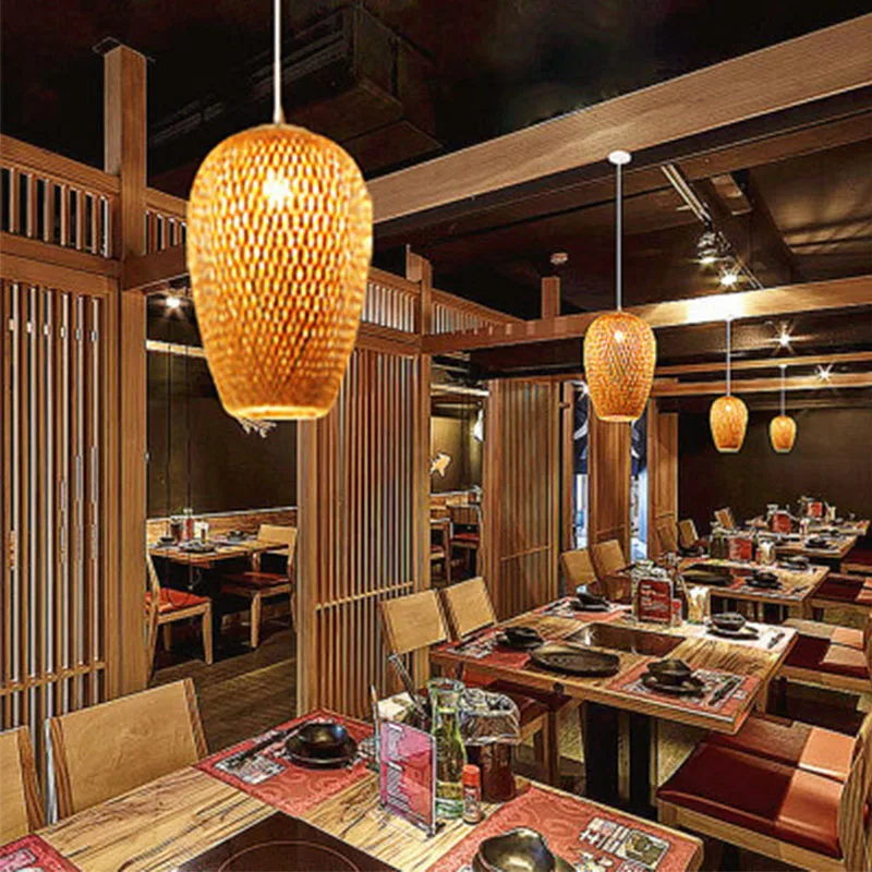Bamboo Weaving Ceiling LampBamboo Weaving Art DecoHand Knitted Led Pendant Light