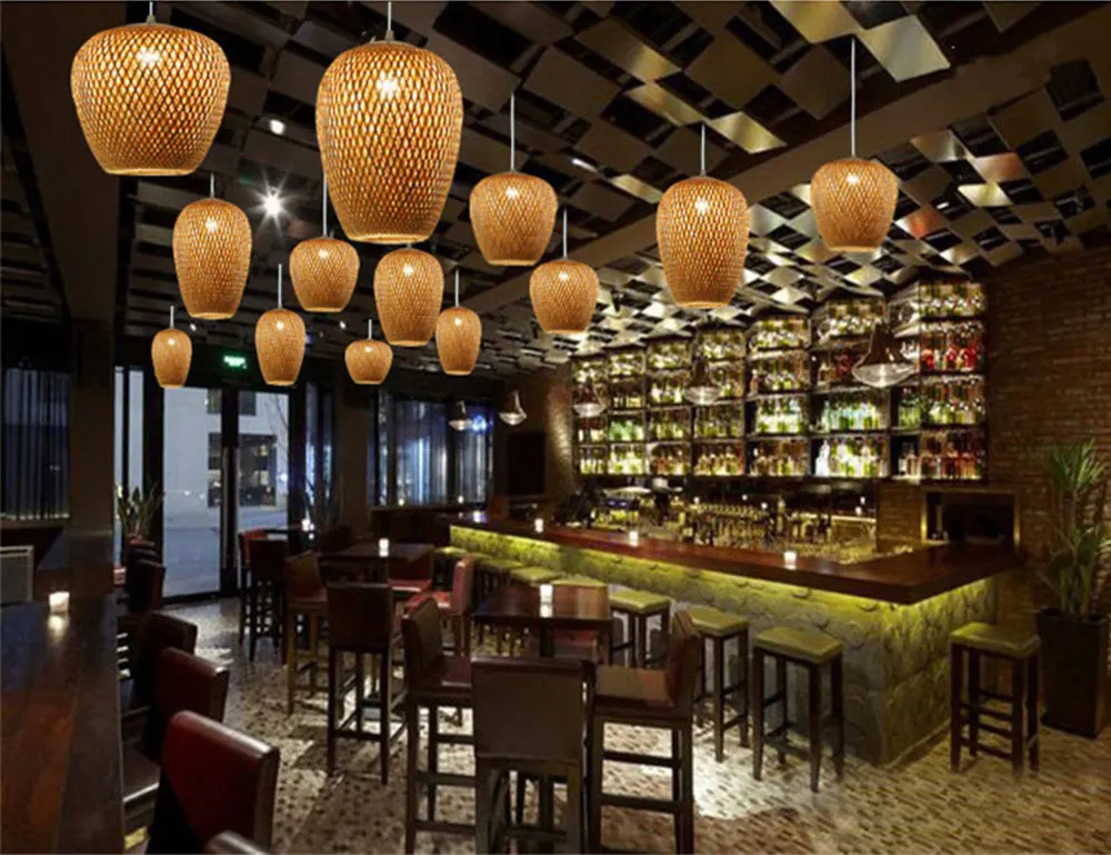 Креативный светодиодный подвесной светильник из ротанга в китайском стиле E27 для ресторана, спальни, украшения в деревенском стиле из ротангаВарианты Применения